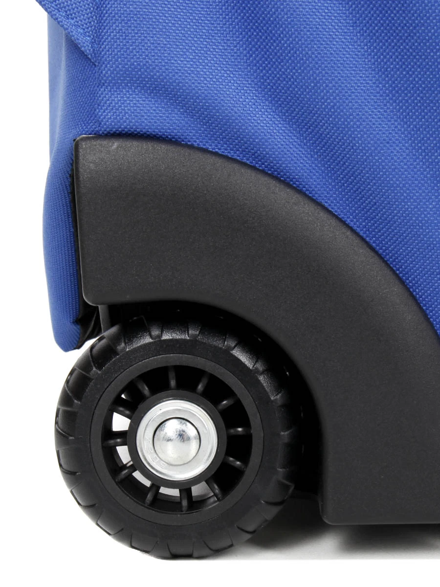 Sur le dessous, des petits renforts de protection permettent de préserver son revêtement des salissures et d’accroître sa stabilité une fois chargé lorsqu’il est posé à même le sol. Enfin, pour des déplacements sous le signe de la sécurité, il est pourvu de bandes réfléchissantes.