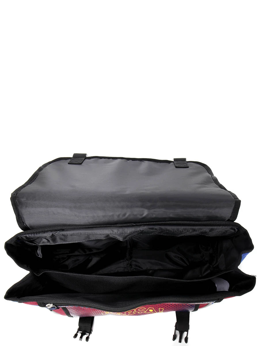 Le cartable 2 roues FC Barcelone se compose de 2 grands compartiments pouvant accueillir des pochettes, des classeurs et des cahiers aux formats A4 et 24 x 32 cm. Ainsi toutes les affaires de classe peuvent y trouver leur place sans aucune difficulté. Une petite poche située à l’avant permet de laisser à part certains petits effets personnels (trousseau de clés, paquet de mouchoirs…). Pratique, il est facile de protéger son contenu de la pluie en utilisant son rabat pourvu de 2 attaches rapides.