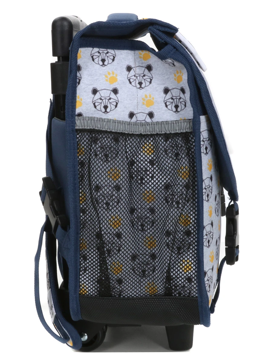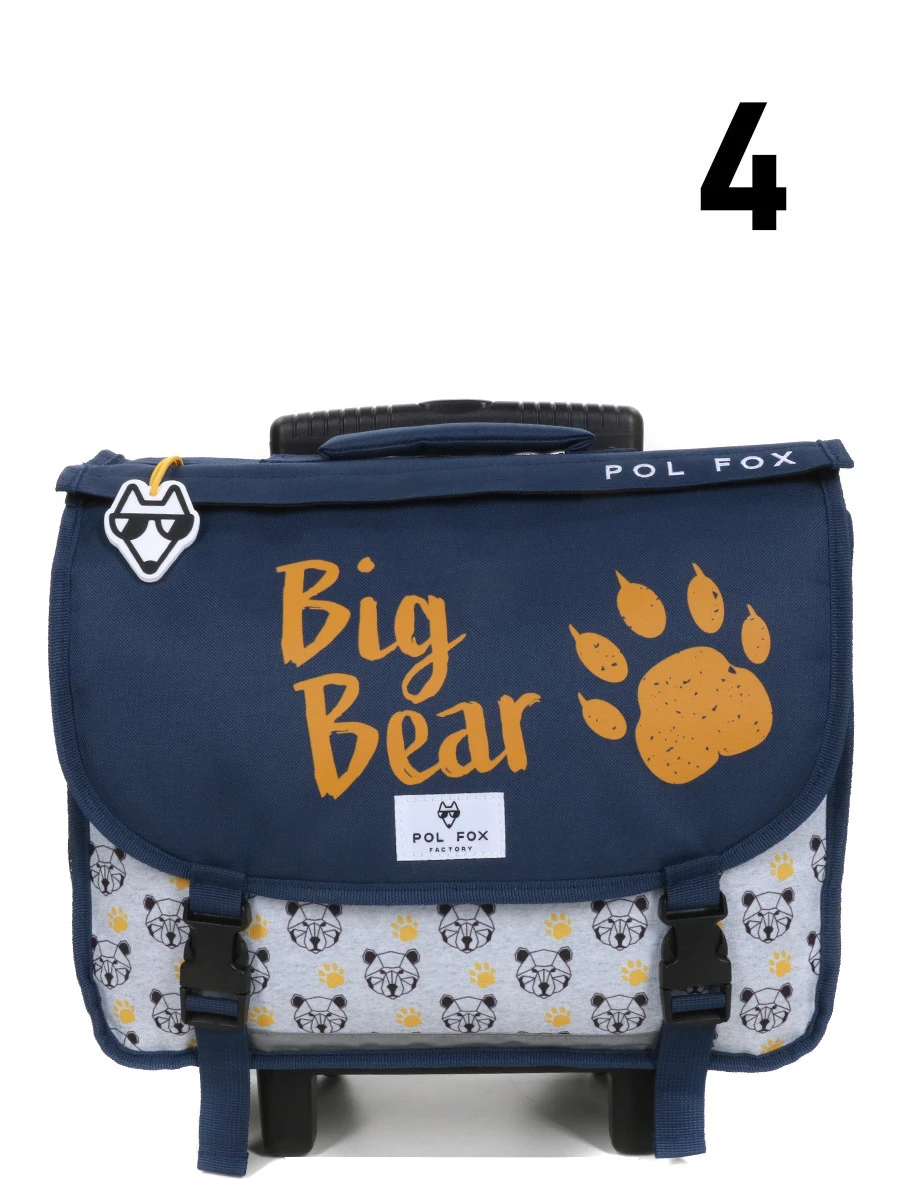Le cartable trolley Réversible Pol Fox Bear offre deux compartiments de rangement compatibles avec les formats A4 et 24 x 32 cm, pour classer les cahiers et manuels par matières. Egalement située sous le rabat à fermeture à attaches, une large poche plate sécurisée par un scratch est réservée aux petits accessoires tels que le set de géométrie, la boîte de crayons de couleurs ou l’étui à lunettes. Sur le côté du sac, atteignable sans avoir à ouvrir ce dernier, une poche en maille filet accueille une bouteille.