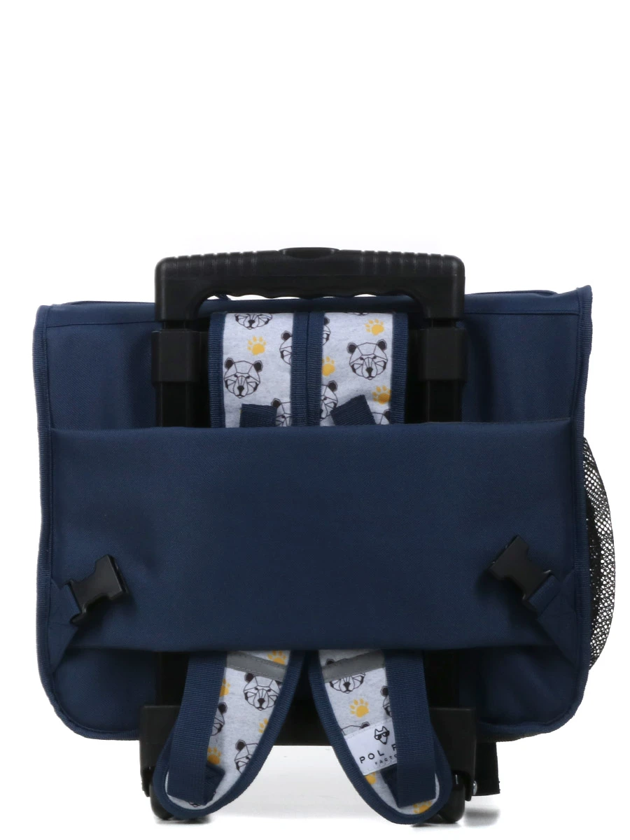 Quoi de mieux pour ne pas charger les épaules des plus petits que le cartable garçon Réversible Pol Fox Bear ? Son trolley à double tube ajustable et ses deux doubles roulettes assurent un tractage fluide. Ses bretelles sont escamotables pour ne pas gêner les déplacements lorsqu’il est utilisé en mode trolley. Matelassées et recouvertes de tissu respirant, elles permettent un portage confortable aux épaules. La poignée haute moussée offre une bonne prise en main. Pour rester toujours visible, même les soirs d’hiver, des détails réfléchissants sont cousus à l’avant et sur les bretelles.