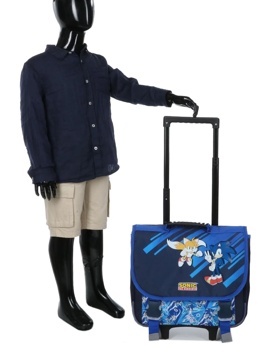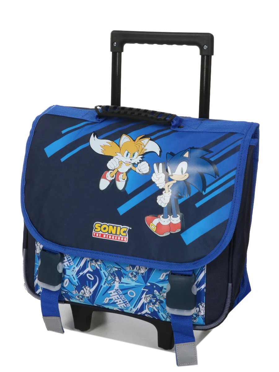 Le cartable à roulettes Sonic & Tails 38 cm fait démarrer l’année scolaire sur les chapeaux de roue avec son design inspiré par les exploits du célèbre hérisson supersonique. Son rabat est orné du petit héros bleu faisant le signe de la victoire et de son complice le renard Tails, tout aussi prêt à affronter le défi de la rentrée. La poche avant est également décorée du personnage Sonic, représenté dans ses multiples courses. Spécialement conçu pour les écoliers en classes de CP, CE1 et CE2, ce cartable est fabriqué en polyester léger, dispose d’un système de tractage et de portage confortable et d’un aménagement pratique. Surtout, il est proposé à un prix intéressant.