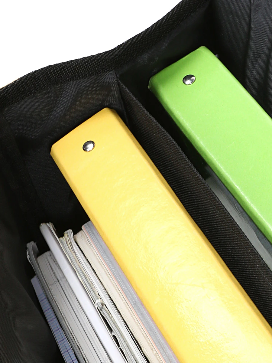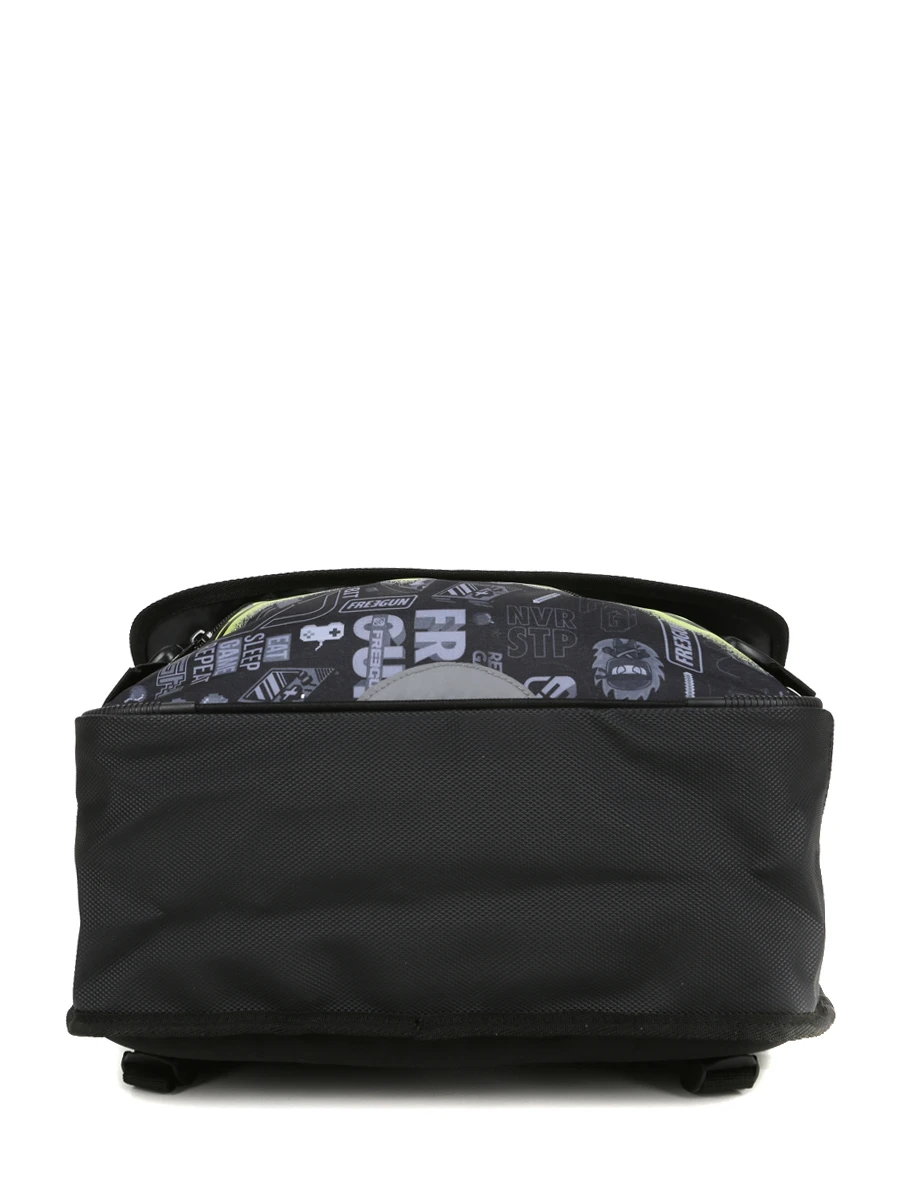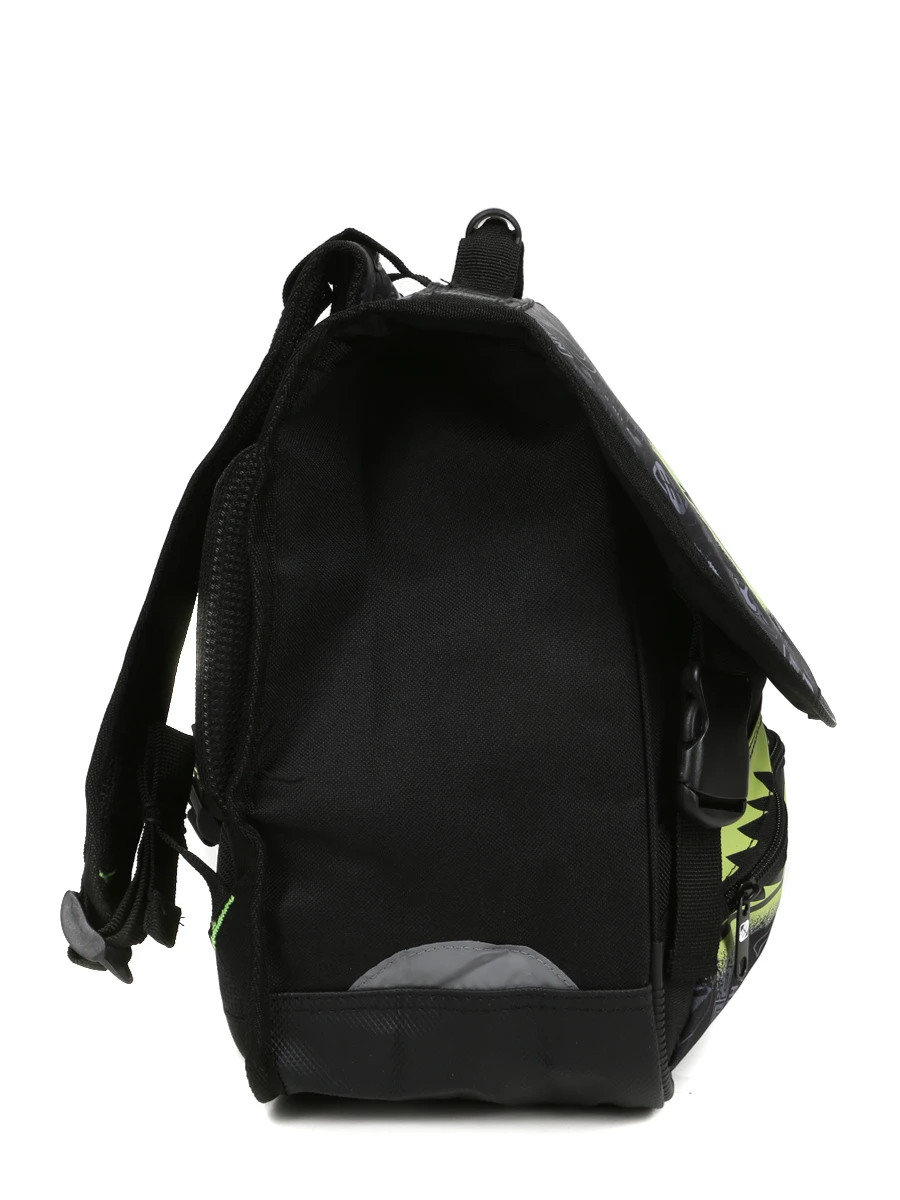 Le rabat à attaches du cartable Freegun Monster Fluo dévoile deux compartiments compatibles avec les formats A4 et 24 x 32 cm dans lesquels se placent les classeurs, les cahiers, les manuels, l’agenda et la trousse. Pratiques, une poche porte-règle, un porte-adresse et un porte-planning se cachent également sous le rabat. A l’avant, une poche zippée permet d’isoler les petits éléments : l’étui à lunettes, le paquet de mouchoirs ou encore une barre d’en-cas par exemple.