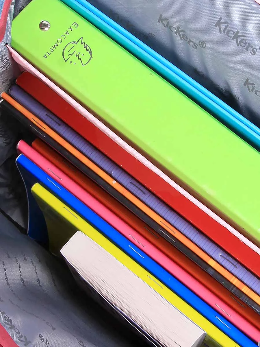 Les deux compartiments du cartable Kickers Casual Girl accueillent tout le nécessaire d’une journée de classe : livres, cahiers et classeurs à anneaux de formats A4 et 24 x 32 cm, la trousse et l’agenda. Dans les deux poches frontales peuvent être placés le matériel de géométrie, le goûter et un étui à lunettes. Glissée dans sa poche dédiée, la règle ne risque plus de se cacher entre deux cahiers. Pour n’oublier aucun manuel avant de partir, l’emploi du temps est affiché sous le rabat, dans le porte-planning. Enfin, on n’oubliera pas de noter les coordonnées de la propriétaire du cartable dans le porte-adresse pour éviter des tracas en cas de perte.