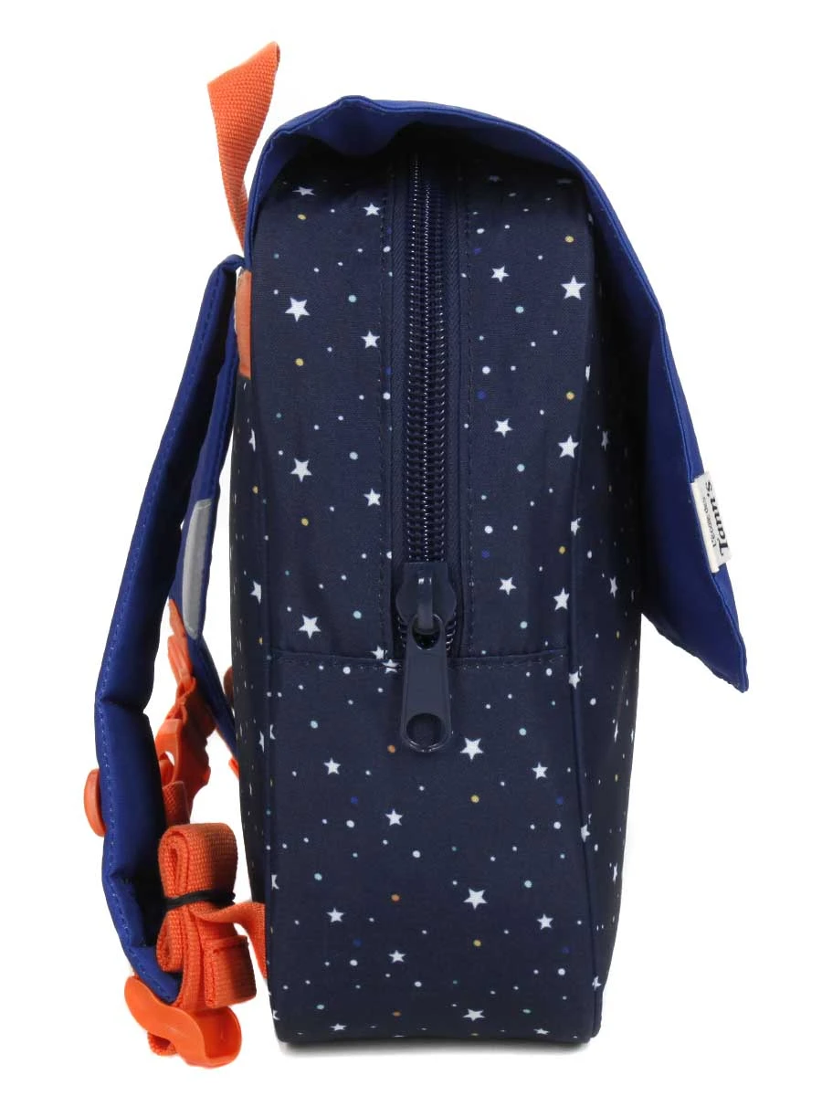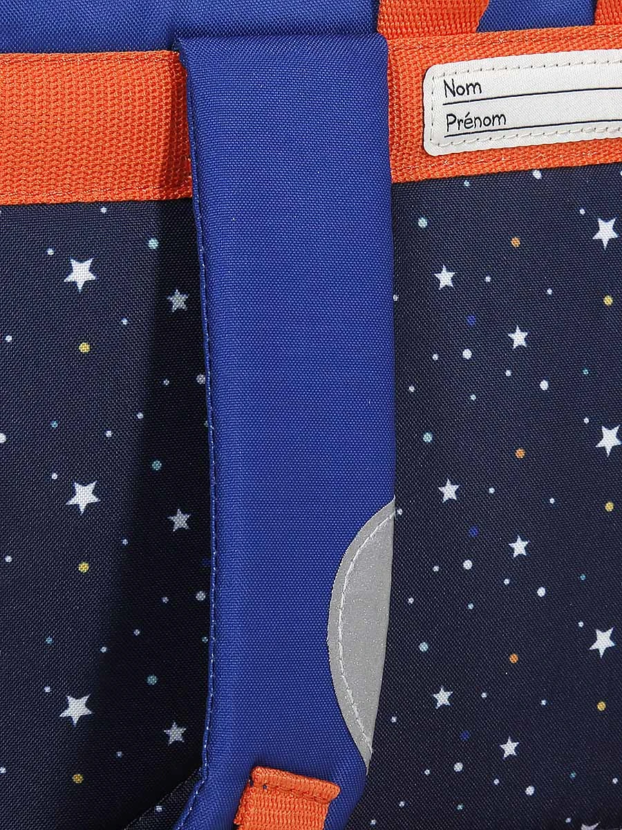 Le cartable maternelle L’école des Tann’s Cosmos se porte avec confort sur les épaules avec ses bretelles moussées ajustables, son dossier rembourré et sa sangle de poitrine réglable. Pour le suspendre à une patère ou le tenir à la main, il est en sus doté d’une petite poignée haute. Ses finitions réfléchissantes permettent à votre petit garçon de rester toujours bien en vue des automobilistes pour des trajets de la maison à l’école placé sous le signe de la sécurité. Enfin, pour éviter de le perdre, il est possible d’inscrire le prénom de son jeune propriétaire sur son étiquette nominative.
