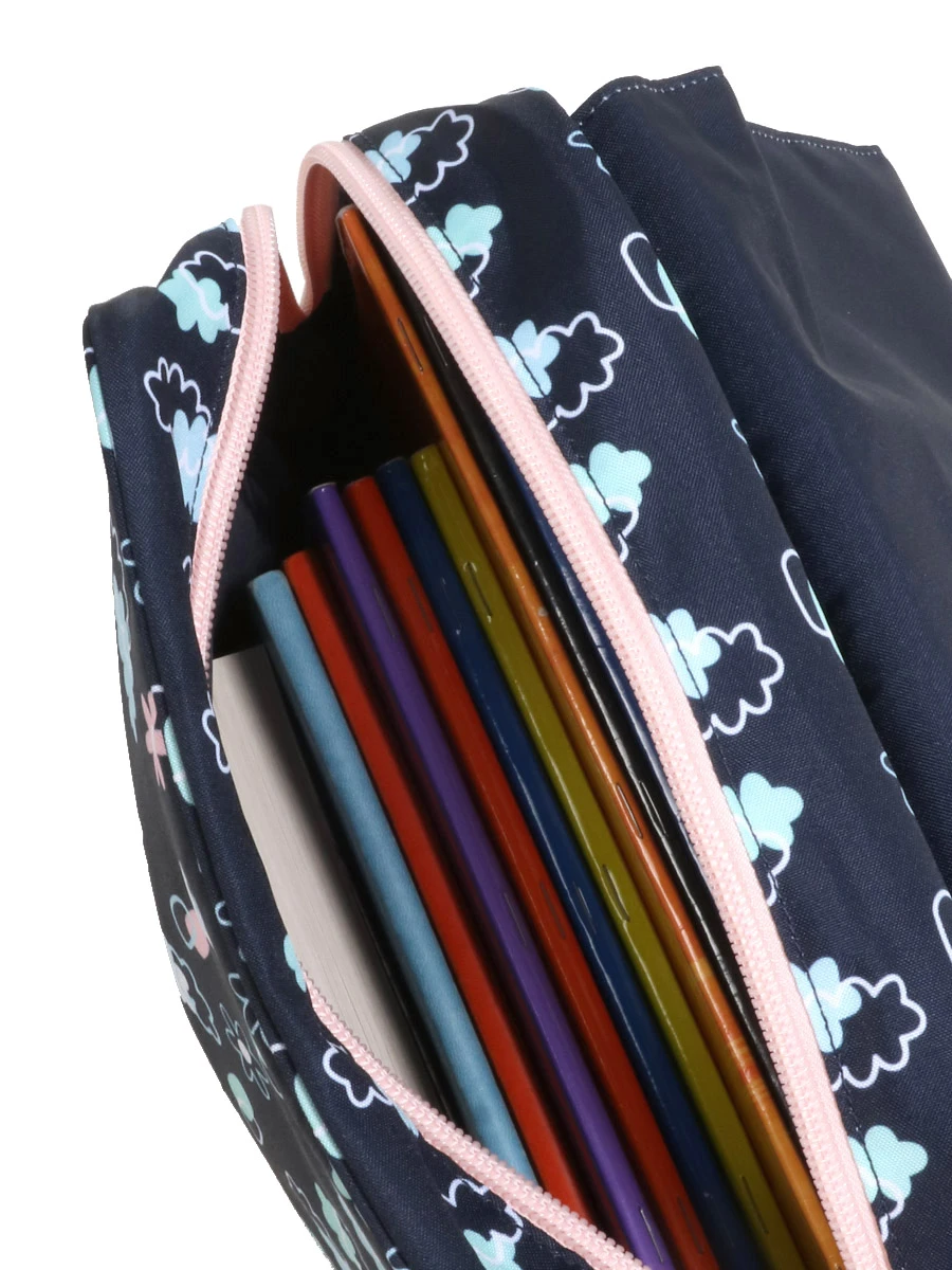 Le petit cartable L’école des Tann’s Jungle dispose d’un compartiment doublé fermé par un zip et un rabat magnétique pour une utilisation des plus simples. Les petits accessoires peuvent être organisés dans les deux poches intérieures. Pour les escapades du week-end ou les activités du mercredi après-midi, il est fourni avec un petit sac piscine assorti.