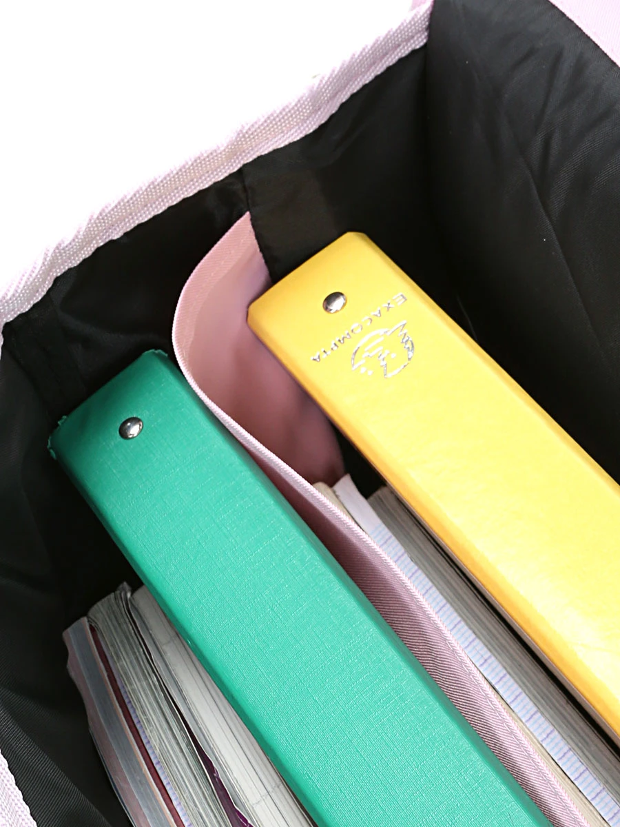 Le cartable Oberthur Cosmic Girl s’ouvre par un rabat à attaches clips sur deux compartiments logeant des cahiers et classeurs de formats A4 et 24 x 32 cm, des livres scolaires, la trousse et l’agenda. La règle se glisse dans la poche dédiée et les petits accessoires se rangent dans la poche frontale. Le zip de cette dernière est pourvu d’une tirette en plastique souple en forme d’étoile, aussi décorative que pratique pour les petites mains encore maladroites. Pratique, un emplacement est prévu pour l’emploi du temps, pour ne jamais se tromper au moment de faire ses devoirs ou préparer son cartable. Enfin, pour éviter que le cartable soit égaré, on pensera à noter les coordonnées de la fillette dans le porte-étiquette.