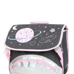 Le cartable Oberthur Cosmic Girl 38 cm met des étoiles dans les yeux des petits filles en classes de CP, CE1 et CE2 avec son design inspiré par l’univers spatial. Les fillettes qui rêvent de devenir astronautes adorent les motifs rose pâle sur fond gris qui ornent son rabat (planète, croissant de lune, étoiles et constellation en forme cœur), sa poche frontale en plastique scintillant et les paillettes qui se cachent dans ses fermoirs clips en plastique semi-transparent. Les parents de leur côté notent les atouts en matière d’ergonomie et de fonctionnalité de ce cartable très bien conçu.