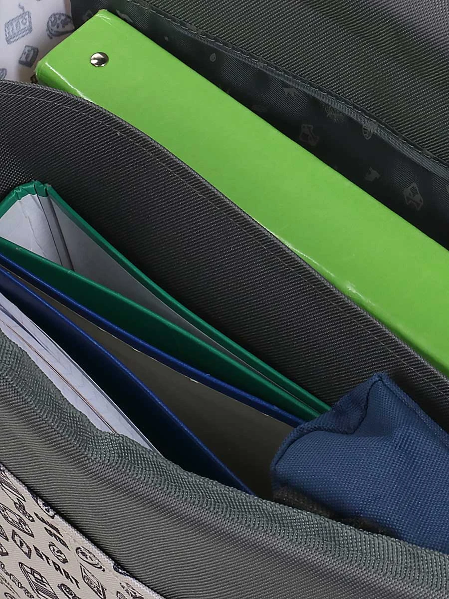 Répartis entre deux compartiments, une poche intérieure et un porte-bouteille, le volume de rangement du cartable CP – CE2 Réversible Pol Fox Gamer correspond aux besoins des élèves du CP au CE2. Livres, cahiers 24 x 32 cm, classeurs pour feuilles A4, agenda et trousse logent dans ses deux espaces de rangement sous son rabat à attaches. Les petites fournitures scolaires (équerre, règle, feutres, etc.) se glissent dans la poche plate fermée par un scratch. A l’extérieur, un parapluie ou une bouteille tient dans la poche latérale élastiquée.
