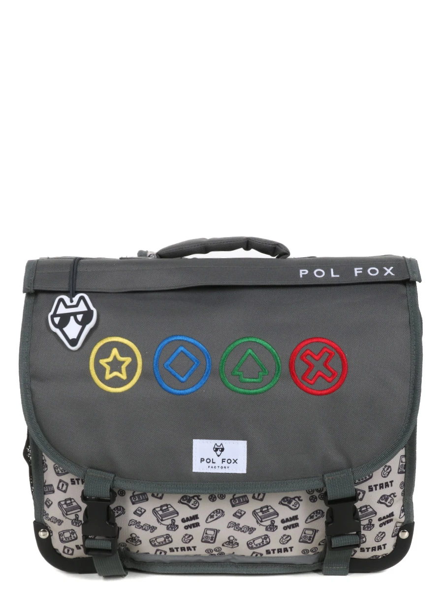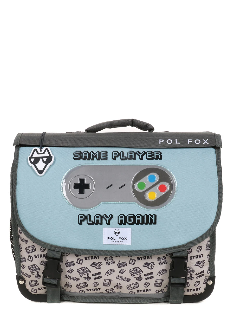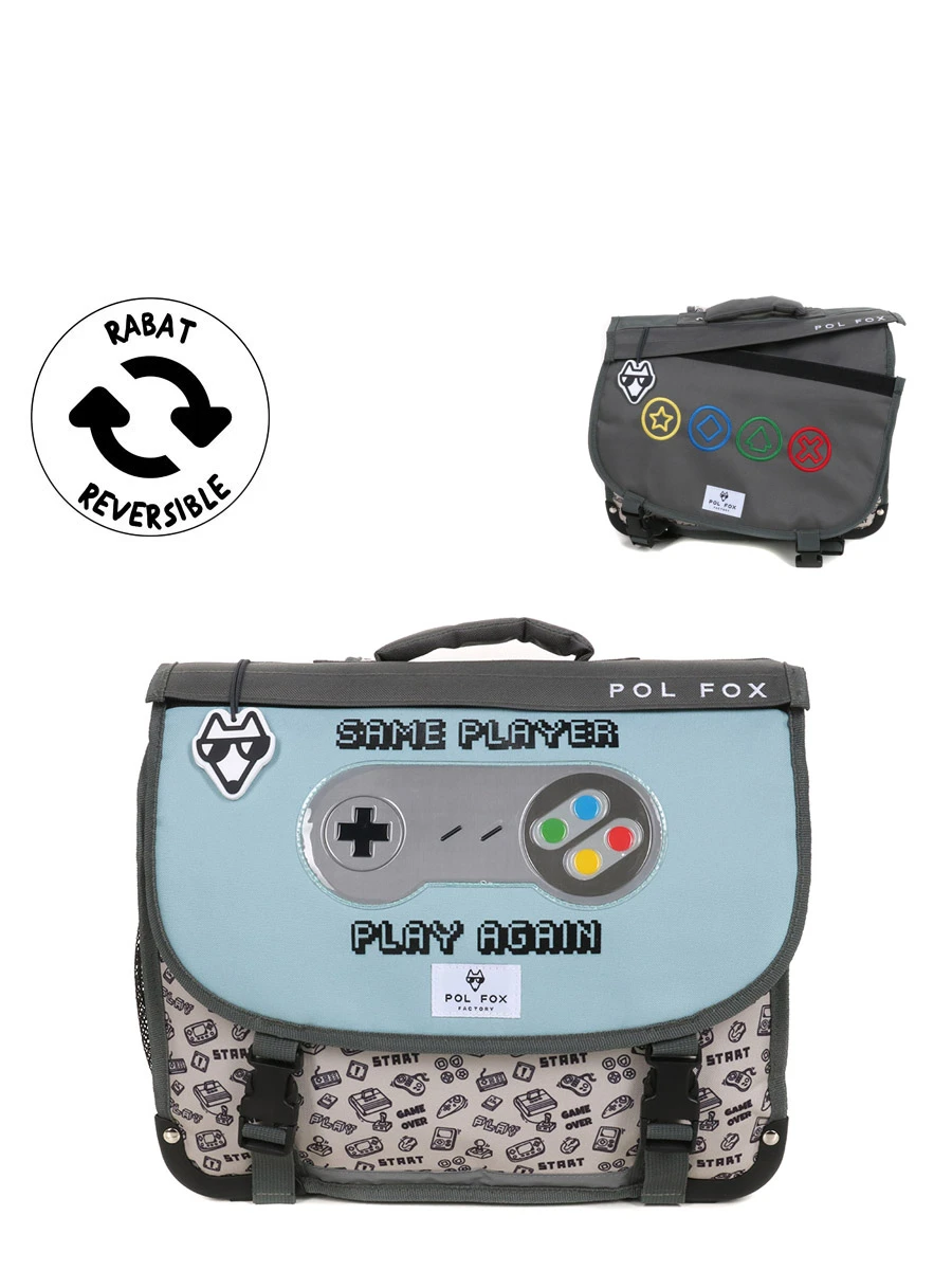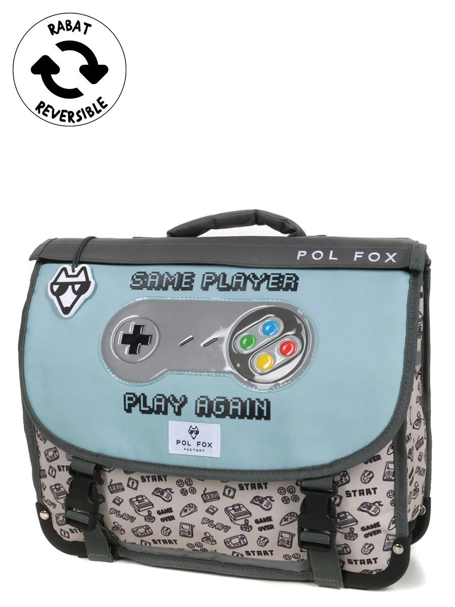 Le cartable Réversible Pol Fox Gamer 38 cm fera briller les yeux des gamers en herbe et les motivera à prendre le chemin de l’école. Son design devrait même attirer les regards des adeptes de jeux vidéo dans la cour de récréation ! Un gros patch plastifié représentant une manette de jeu orne en effet son rabat. Réversible, celui-ci arbore de l’autre côté quatre symboles évoquant les boutons de cette manette, bien connus des initiés. Satisfaisant les enfants côté style, le cartable satisfait également les parents côté praticité, ergonomie, solidité et sécurité.