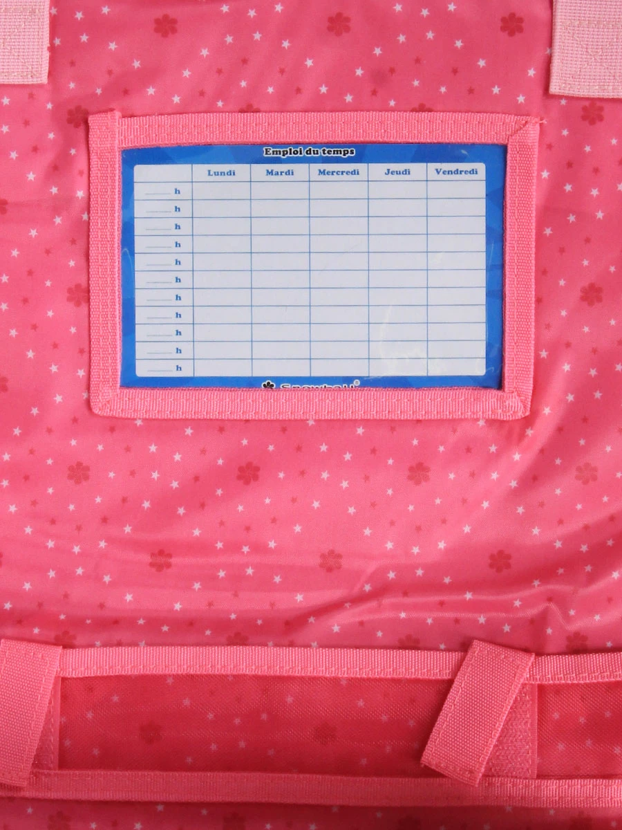 Les cahiers peuvent être organisés efficacement dans le cartable ergonomique Snowball Romantique Licorne grâce à ses deux compartiments et son porte-planning. La carte de cantine est à l’abri dans la petite poche intérieure zippée. Un passant équipé de scratch permet de maintenir la règle à sa place et d’éviter qu’elle ne se cache dans un classeur. Une poche frontale permet de garder les petits cahiers de brouillon et de texte à portée de main. En cas de perte, il est facilement restitué à son propriétaire grâce au porte-étiquette situé dans le dos.