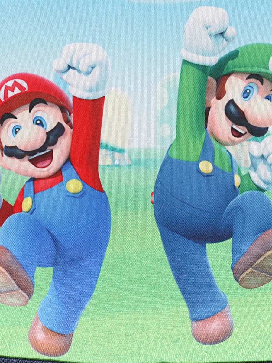 Le cartable Super Mario 38 cm prolonge l’amusement des parties de jeux vidéo avec les copains jusqu’à la cour de récréation : il séduit par son design inspiré des aventures du petit plombier italien qui bondit joyeusement sur son rabat avec son frère Luigi, sur un décor typique des paysages du jeu. Le reste du sac se distingue par son revêtement bleu vif et sa poche avant décorée des éléments caractéristiques de Super Mario : tortues, champignons, étoiles, morceaux de mur, etc. Avec ses dimensions adaptées aux classes de CP, CE1 et CE2, son polyester léger et son prix abordable, ce cartable a tout pour séduire !