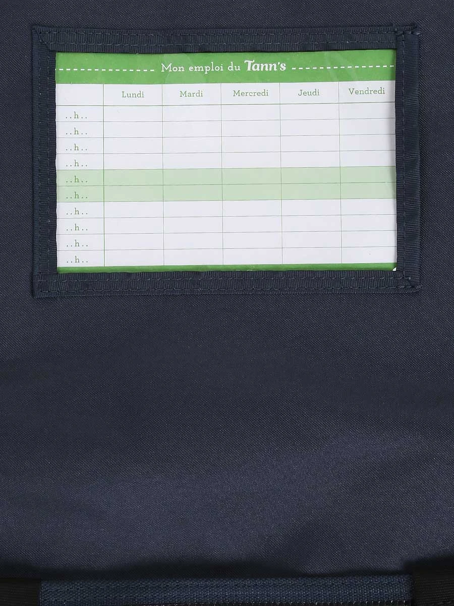 Le cartable ergonomique Tann’s Elliott dispose de deux compartiments doublés pour séparer les cahiers par taille ou par matière. Deux poches intérieures, un passant pour règle, un porte-planning et deux poches frontales permettent d’organiser les accessoires soigneusement. En cas de perte ou d’oubli, il est rapidement restitué à son propriétaire grâce à son porte-étiquette.