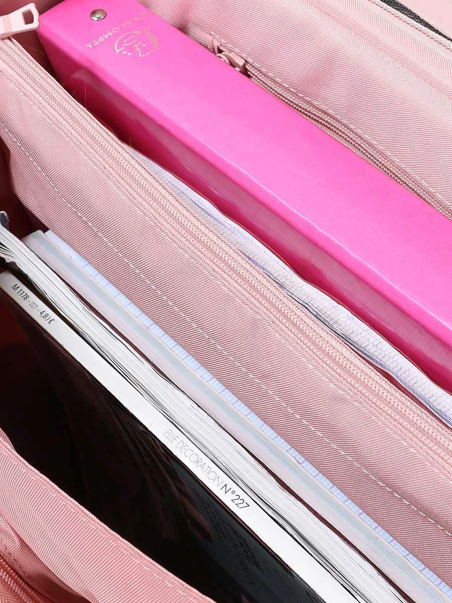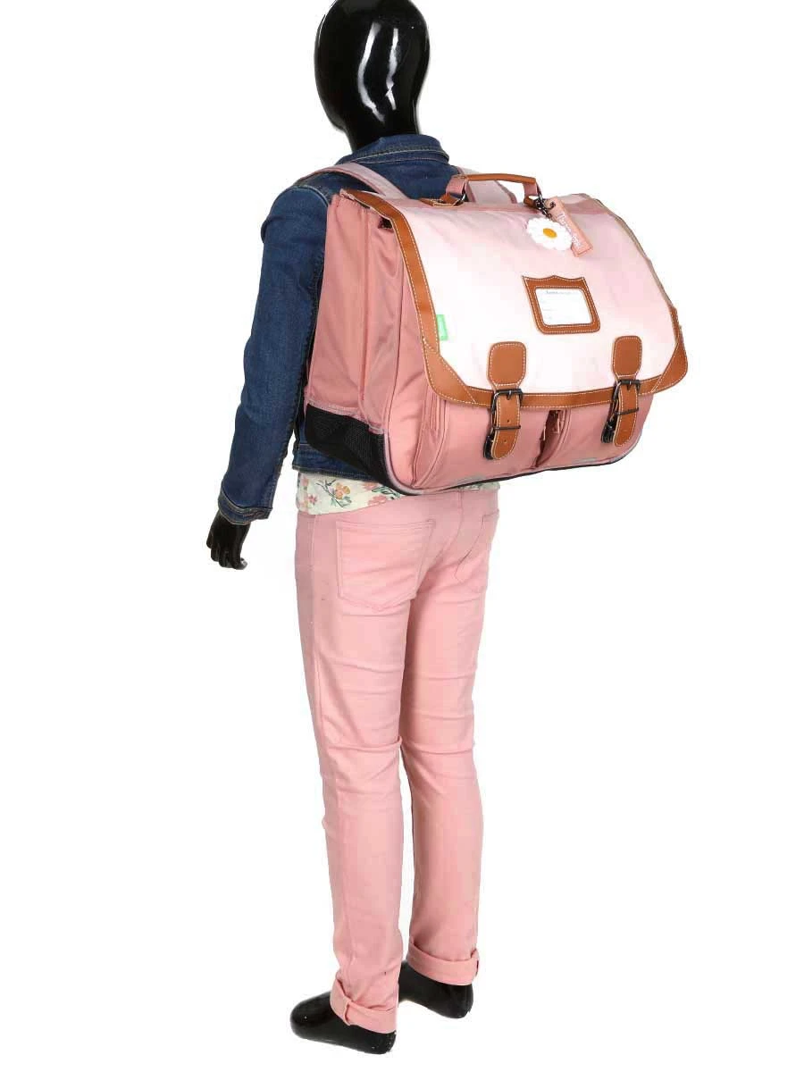 Équipé de deux compartiments, le cartable girly Tann’s Eva permet de trier soigneusement les classeurs et cahiers. La règle reste maintenue en place grâce au passant qui lui est dédié tandis que les petits accessoires peuvent se loger dans les deux poches intérieures. Le goûter et la carte de cantine sont disponibles en accès rapide grâce aux deux poches frontales zippées. Il comporte en prime un porte-étiquette et un porte planning pour faciliter la vie des parents dont le petit bout de chou a tendance à être tête-en-l’air.