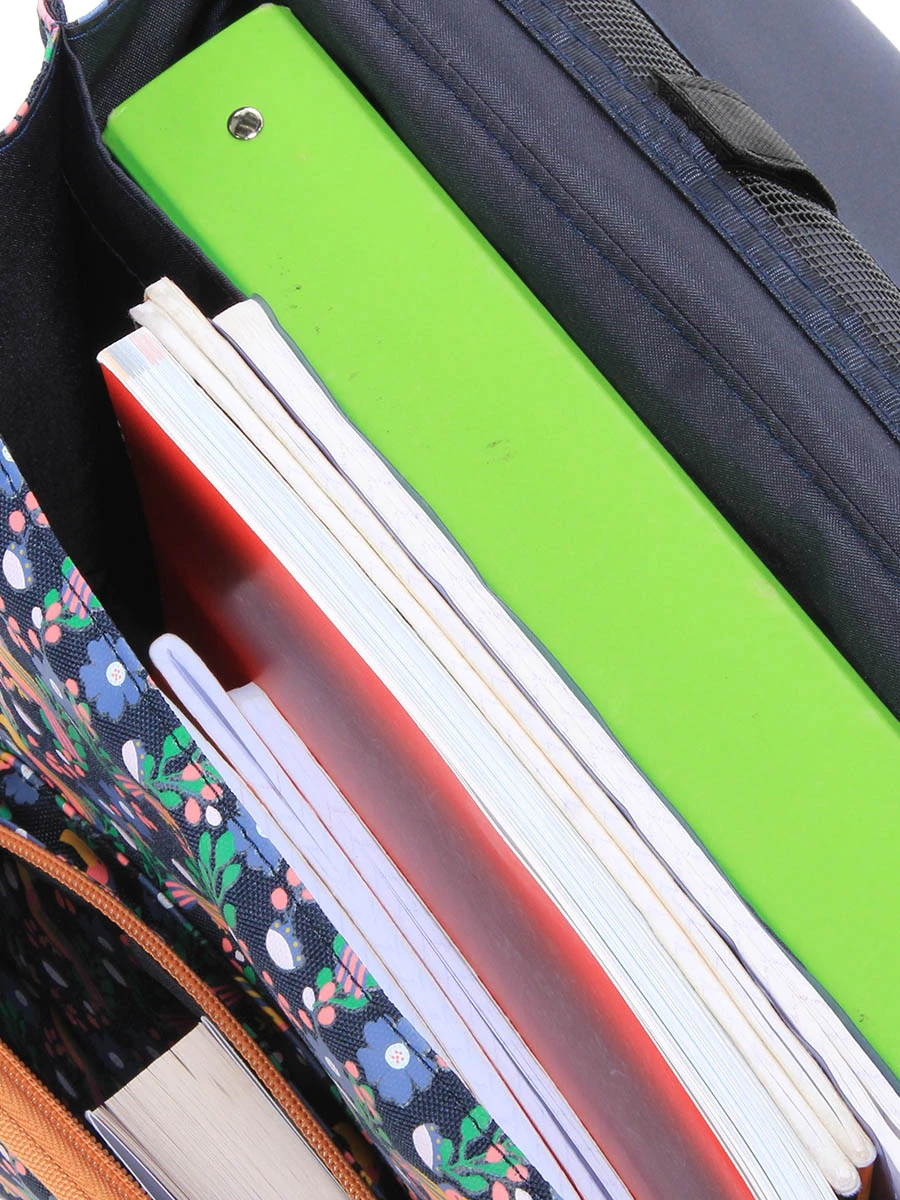 Le cartable girly Tann’s Gabrielle possède deux compartiments spacieux pour trier les cahiers par taille ou par matière. À l’intérieur, on trouve une poche zippée, un passant pour la règle et un porte planning pour favoriser une organisation soignée. A l’extérieur, il est muni d’une poche frontale pour un accès rapide aux petits objets comme le goûter ou le cahier de texte, et d’un porte étiquette pour faciliter le quotidien des parents.