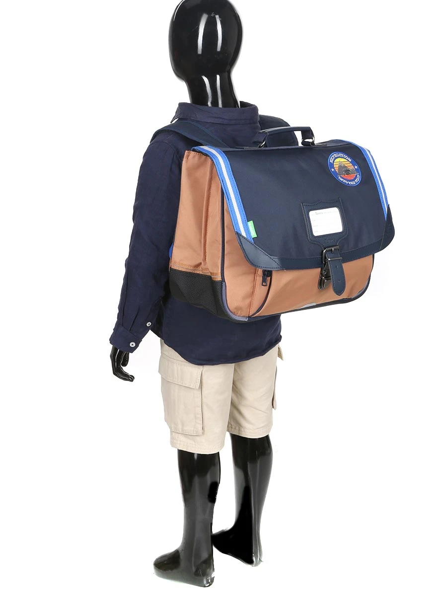 Le cartable Tann’s Loan 38 cm est fabriqué en polyester recyclé pour respecter l’environnement. Il permet d’emporter facilement toutes les fournitures nécessaires aux classes du CP au CE2, notamment des cahiers A4 et 24 x 32. Avec ses détails réfléchissants situés aux endroits stratégiques, il assure à son petit porteur d’être vu sur le chemin de l’école. Son joli patch brodé et ses couleurs terriennes directement inspirées par la nature ont tout pour faire rêver les plus jeunes explorateurs.
