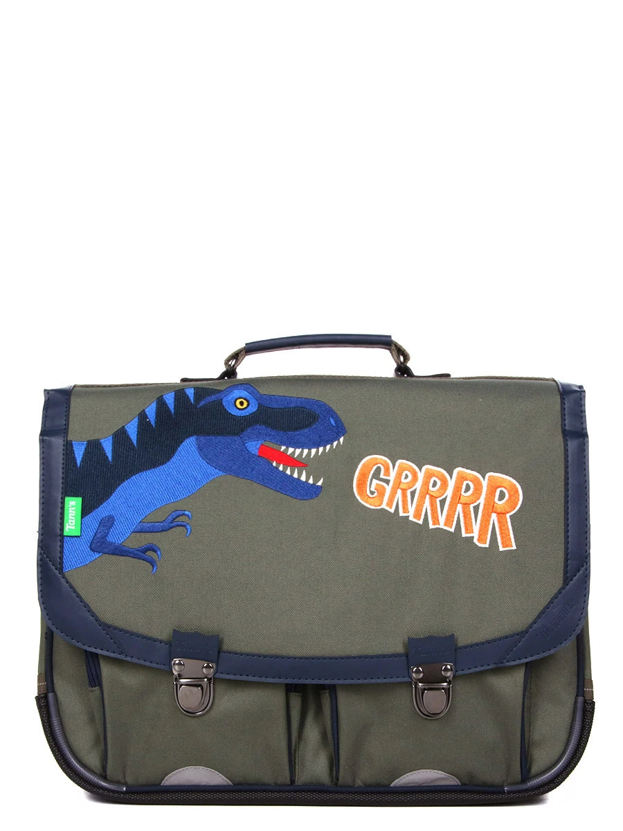 Le cartable Tann’s Oscar 38 cm – 2 boucles ravit les paléontologues et aventuriers en herbe avec sa grande broderie représentant un T-rex rugissant. Si le passé est fascinant, l’avenir aussi est important, c’est pourquoi il est conçu en polyester fait à partir de matières recyclées. Compatible au format A4 et 24 x 32, il est idéal pour les classes du CP au CE2. Sa doublure intérieure protège les cahiers et les manuels de l’humidité.
