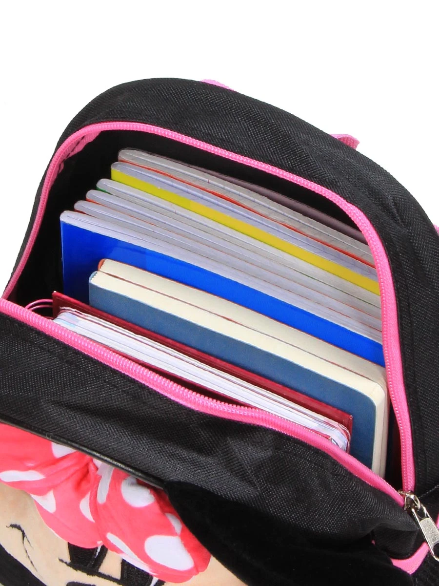 Le compartiments du sac à dos maternelle Minnie Oreilles accueille tous les indispensables pour la journée d’école. Trousse, petits cahiers de brouillon et doudou y trouvent en effet une place confortable, tandis que la gourde peut se glisser dans la poche latérale extensible.