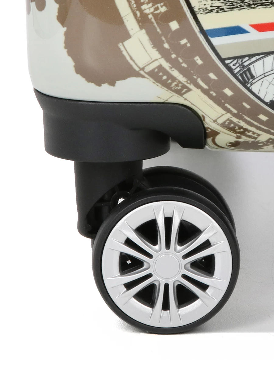 Pour une glisse sans accroc, les valises rigides Madisson Postcards sont dotées de 4 doubles roulettes et d’une poignée télescopique double tube (ajustable pour la taille cabine). Des poignées de portage sont également présentes pour permettre une prise en main commode quand il est nécessaire de les porter (pour franchir une volée de marches, notamment). Enfin, ses valises ne négligent pas non plus la sécurité avec leur serrure à code personnalisable permettant de vérouiller en un tour de main l’accès à leur contenu.