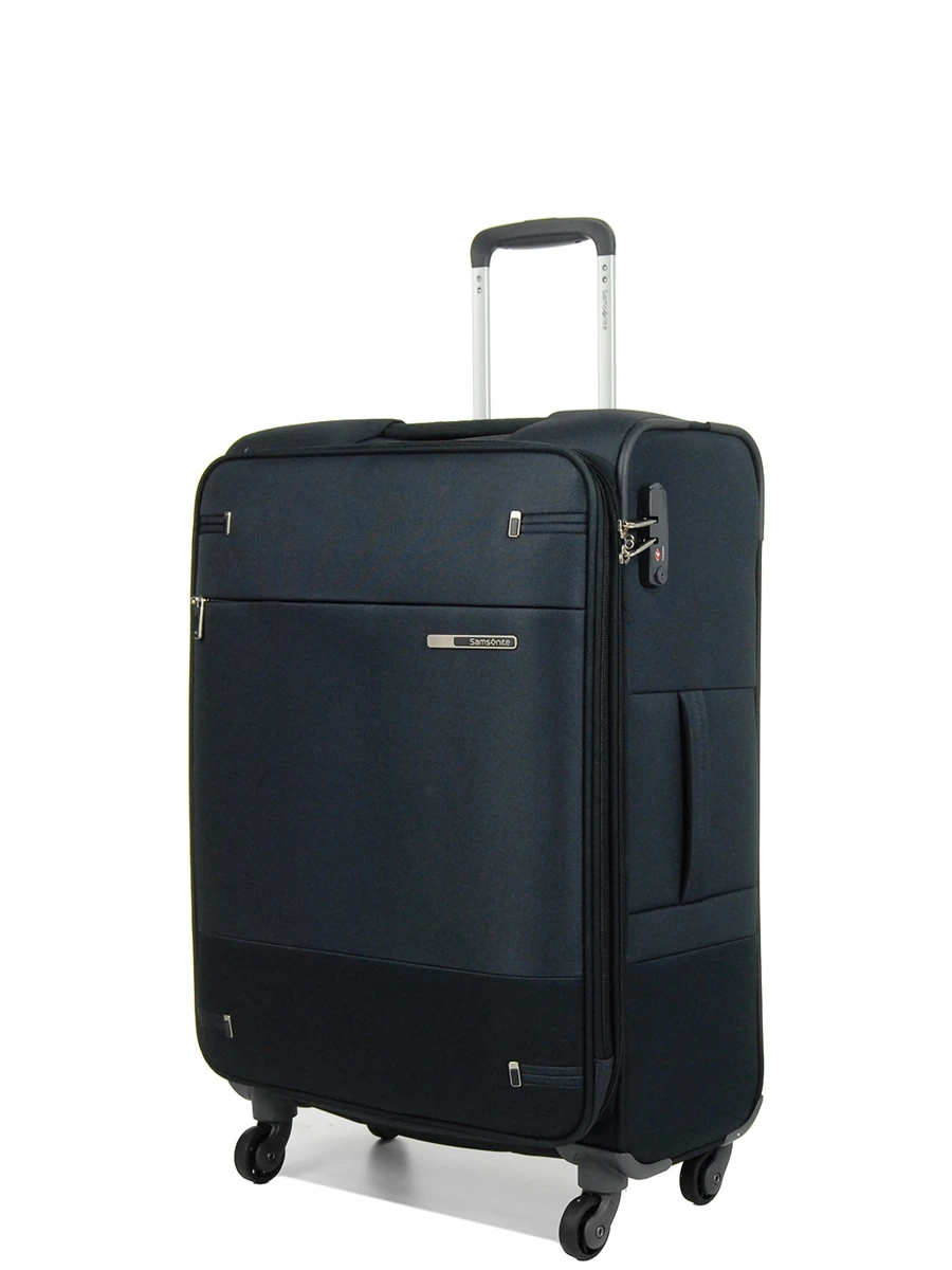 Les valises Samsonite Base Boost se tractent du bout des doigts grâce à leur poignée télescopique double tube à position réglable et à leurs 4 roulettes pivotantes à 360°. Dessus, une poignée moussée offre une bonne prise en main pour descendre quelques marches, les déposer sur un rack à bagages… Une serrure TSA à code et un porte adresse sont présents sur chacune de ces valises pour des voyages l’esprit serein.