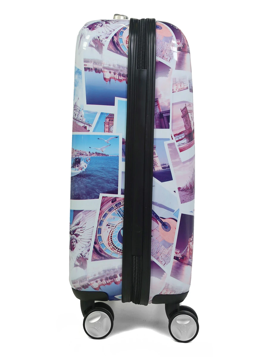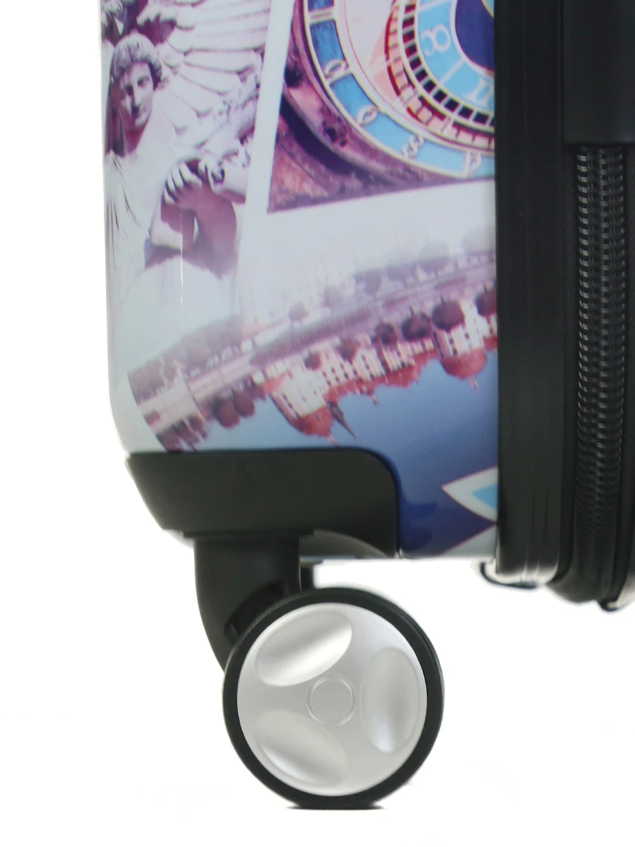 L’ensemble de 3 valises rigides Snowball Back to Europe est doté d’un design fun composé de polaroïds qui nous font grandement voyager avant même de mettre les pieds dans l’avion. Fabriqué à partir de polycarbonate, sa coque résiste parfaitement aux chocs dans les transports. Il peut convenir aux petits week-ends comme au long séjours de plus de trois semaines grâce au bagage de 67 cm et celui de 75 cm. A noter que le plus petit format s’adapte même aux exigences des normes cabines des compagnies low-cost comme EasyJet.
