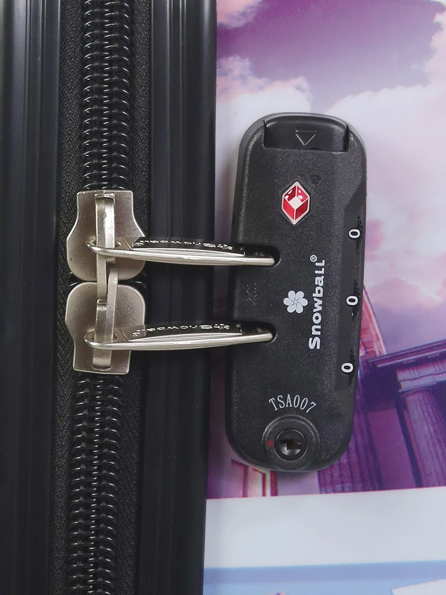 Cet ensemble de valises 4 roues Snowball Back to Europe est équipé de serrure à code TSA, conseillée pour un départ vers les États-Unis et pour une meilleure sécurité en général. Les valises peuvent soit se tenir à la main grâce aux deux poignées de portage supérieure et latérale, soit se tirer à l’aide du trolley ajustable et des 4 roues multidirectionnelles. Les bagages de soute sont dotés de renforts de protection latéraux et d’un soufflet extensible pour gagner entre 8 et 13 L pour le plus grand.