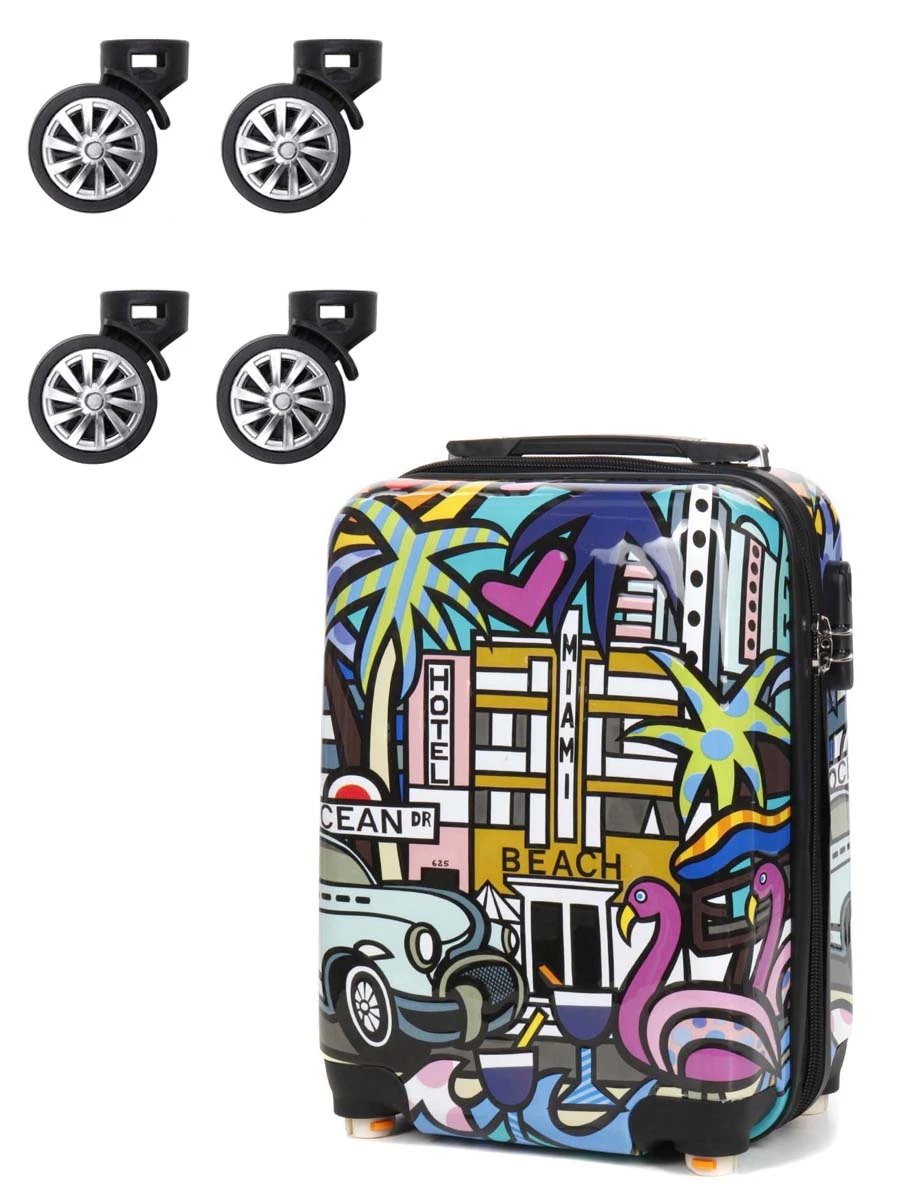 L’ensemble 4 valises Madisson Miami Beach est pratique pour toutes les escapades avec sa valise underseat, sa valise cabine, et ses deux valises extensibles. Elles sont utiles prises séparément ou toutes ensemble pour des grandes vacances dynamiques en famille. Elles ne risquent pas d’être confondues à l’aéroport avec leur motif coloré ! Le contenu est protégé des intempéries grâce à leur coque en ABS et polycarbonate et à la doublure intérieure. Les roues de la valise underseat sont amovibles pour permettre de voyager avec EasyJet sans payer de supplément puisqu’elle se glisse sous le siège.