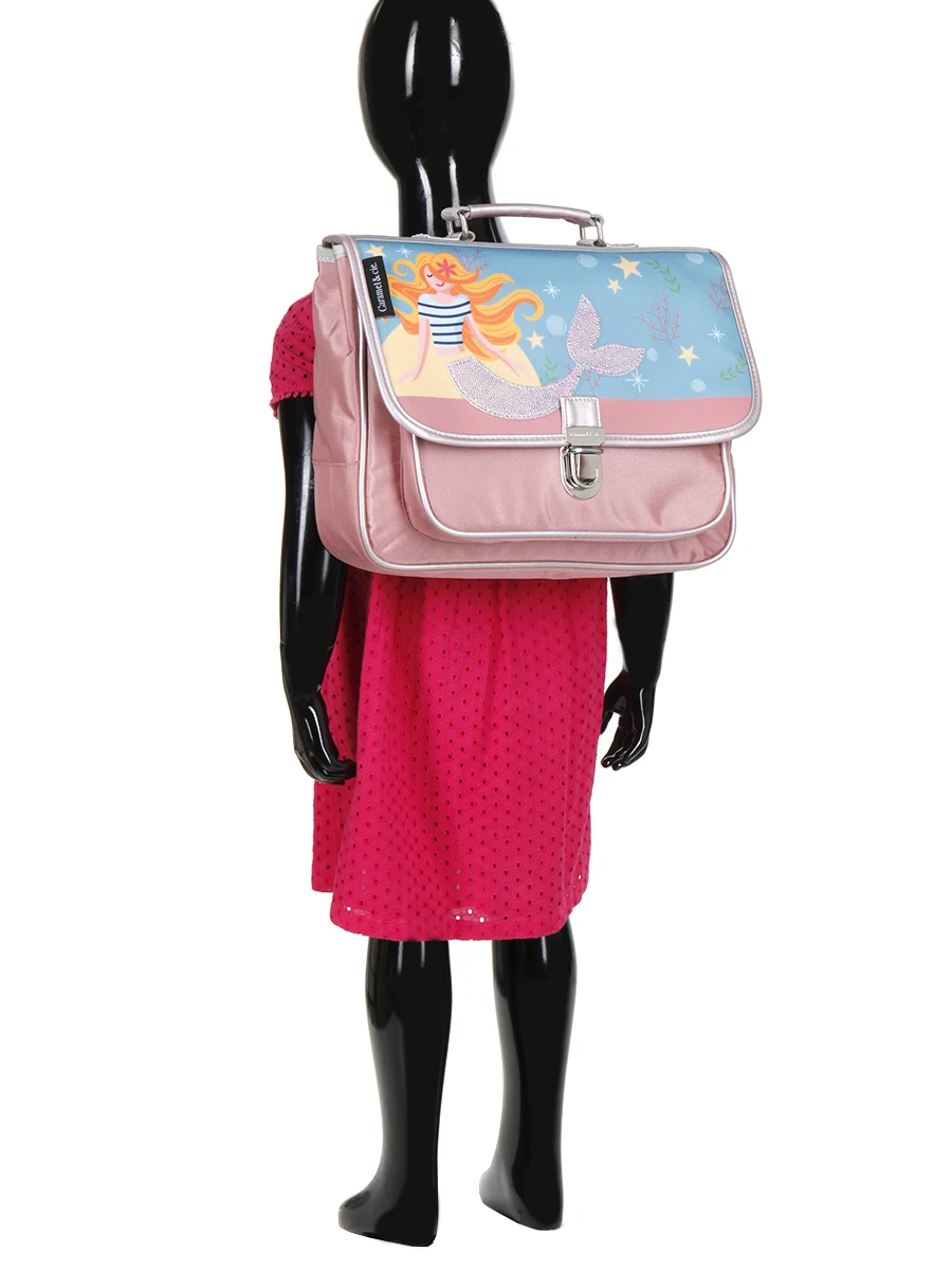 Le petit cartable Caramel & cie Jolie Sirène n’abîme pas ses petites épaules grâce à ses bretelles et son dos rembourrés. La sangle pectorale favorise l’équilibre de son porteur. La poignée est elle aussi ergonomique pour que les petites mains comme les grandes n’aient pas à subir de cisaillements. Le fond est renforcé pour protéger le contenu en cas de choc.
