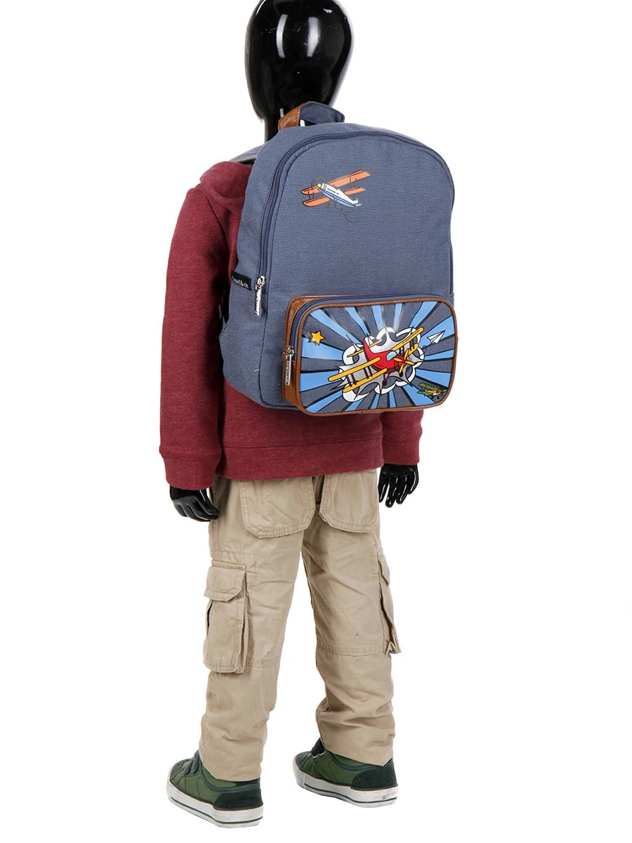 Le petit sac à dos Caramel & cie Looping plaira sans nul doute aux plus jeunes fans d’aviation et d’aventures dans les airs. Ses jolis imprimés mettent à l’honneur l’univers des courses poursuites en avion à la manière d’une BD haute en couleur. Son style unique est loin d’être son seul atout. Il est en plus léger et robuste (grâce à sa conception qualitative en polyester imperméable), ergonomique et très pratique. Il a ainsi tout pour simplifier le quotidien des écoliers dès leurs premiers pas en classe maternelle.