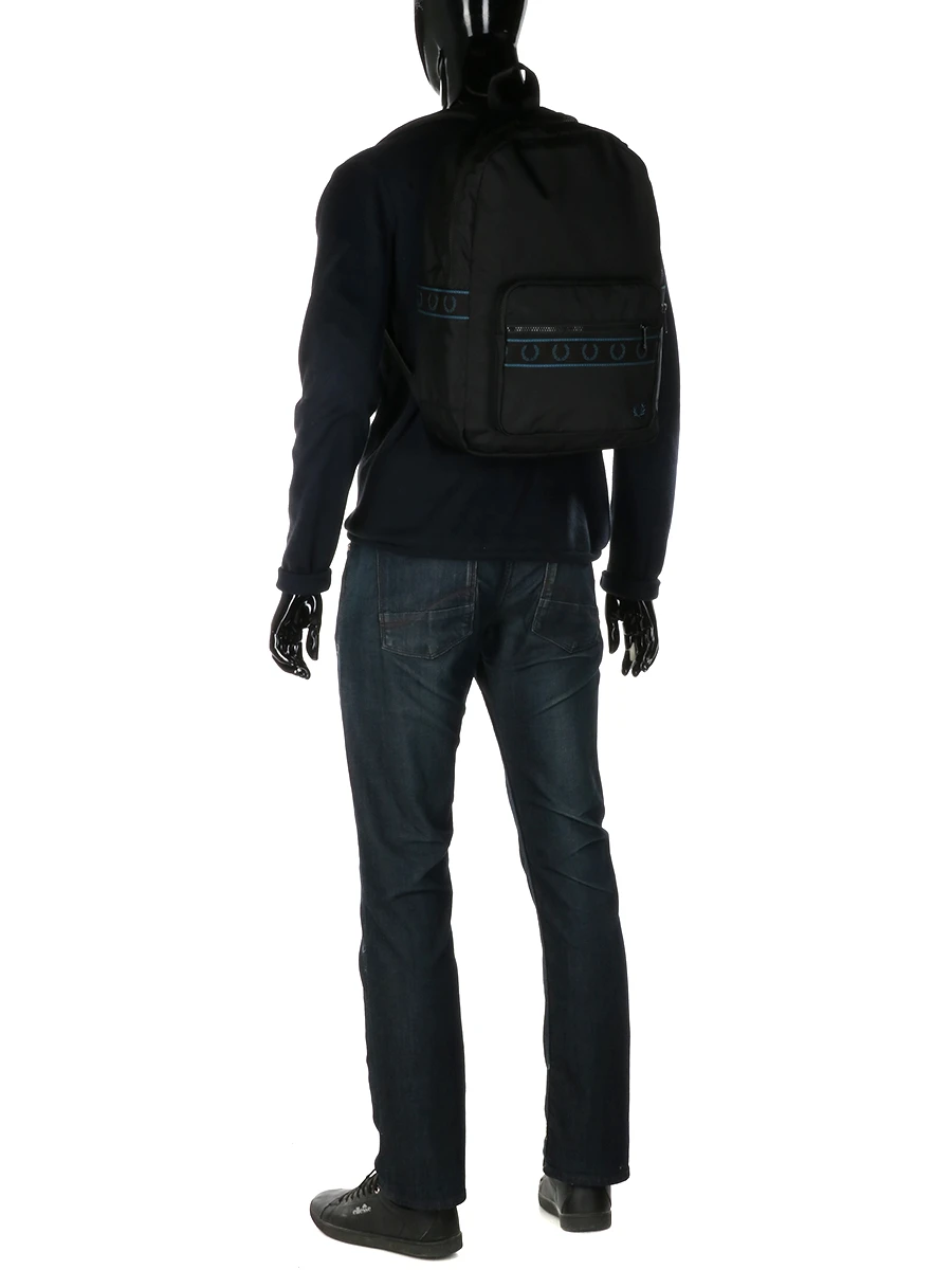 Le compartiment du sac casual Fred Perry Contrast Tape est suffisamment spacieux pour y ranger des documents A4 ou un peu de linge en fonction des besoins de la journée. Sa poche renforcée est adaptée pour une tablette ou un ordinateur jusqu’à 15.6 pouces. Cordons d’alimentation et divers câbles peuvent être sériés dans sa poche zippée. Ses 2 poches frontales permettent de laisser accessibles le téléphone, le portefeuille… Sur les côtés, 2 poches porte bouteille complètent le tout.