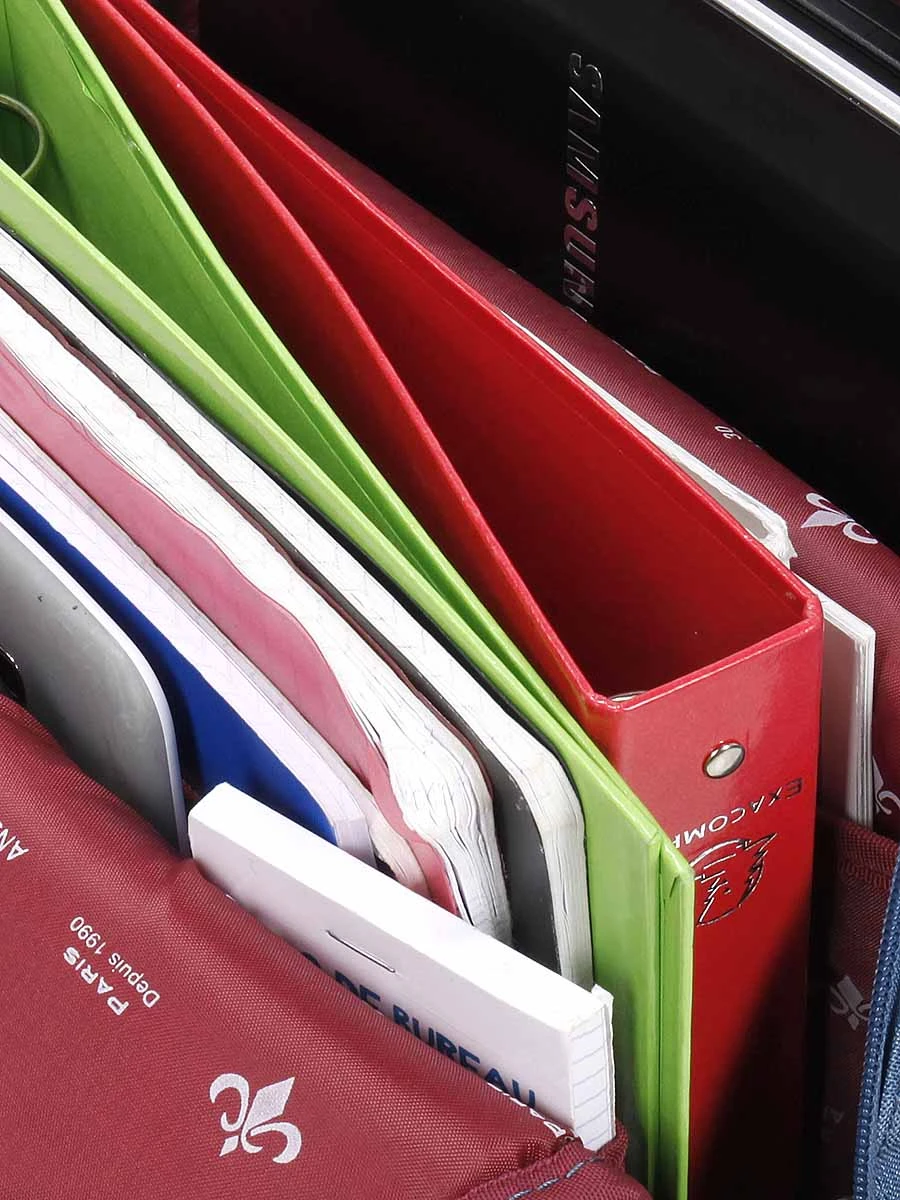 Le sac à dos Lys Urban possède un compartiment pour ordinateur jusqu’à 15.6 pouces. Le deuxième compartiment, en plus de pouvoir contenir des documents au format A4, comporte plusieurs poches. D’abord, une grande poche plate maintient les dossiers bien à la verticale pour garantir qu’ils ne se froissent pas. En face, trois petites poches sont parfaites pour les cartes. A l’extérieur, deux poches frontales viennent ajouter aux possibilités d’organisation. La première est zippée et contient un porte-clefs détachable pour en finir avec les frayeurs de fin de journée. Elle est profonde et peut également loger des carnets par exemple. La seconde poche frontale permet d’y glisser un livre pour un accès rapide par exemple. Une petite poche plate latérale permet de ranger des petits objets supplémentaires. A l’arrière, une poche fermée par un bouton pression peut garder le portefeuille et autres documents importants en sécurité.