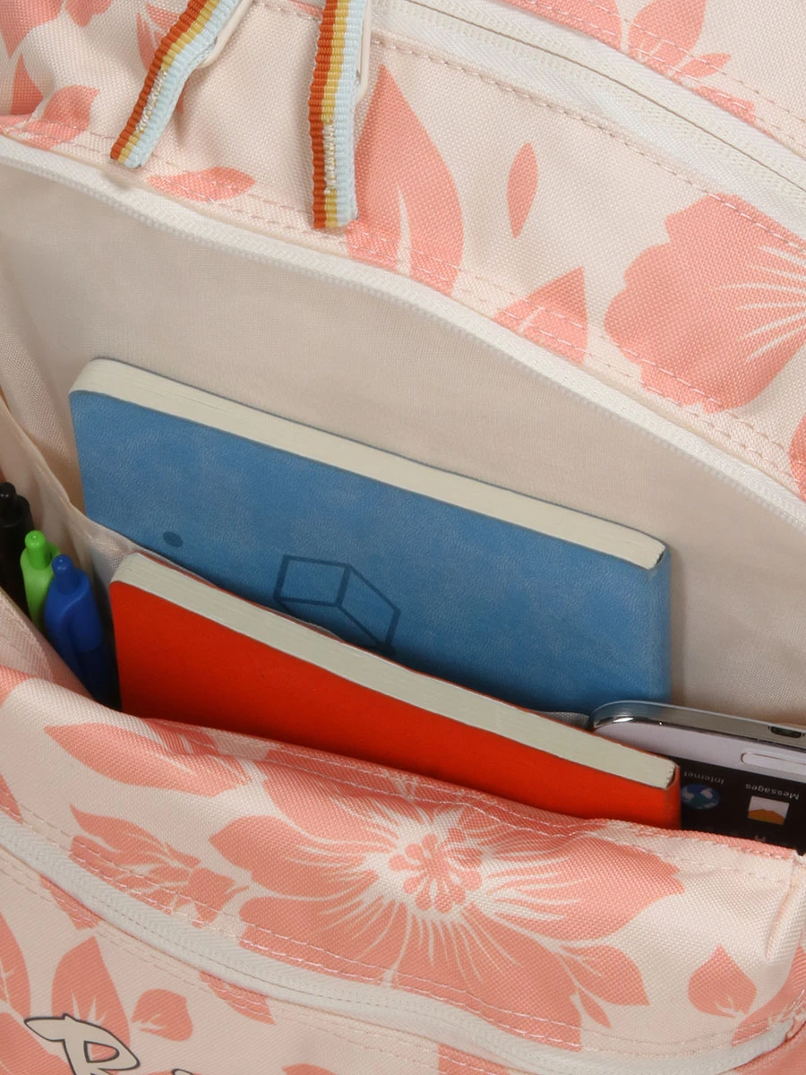 Les deux compartiments du sac à dos ergonomique Rip Curl Blossom Double Dome Pro permettent d’organiser les affaires par taille : les grands classeurs vont dans le compartiment arrière, tandis que les livres au format A4 vont dans le second. Celui-ci dispose en outre de quatre passants pour stylos, d’une grande poche fermée par un scratch, et de deux petites poches plates pour pouvoir trier des accessoires soigneusement. La poche frontale est quant à elle parfaite pour le cahier de texte par exemple.