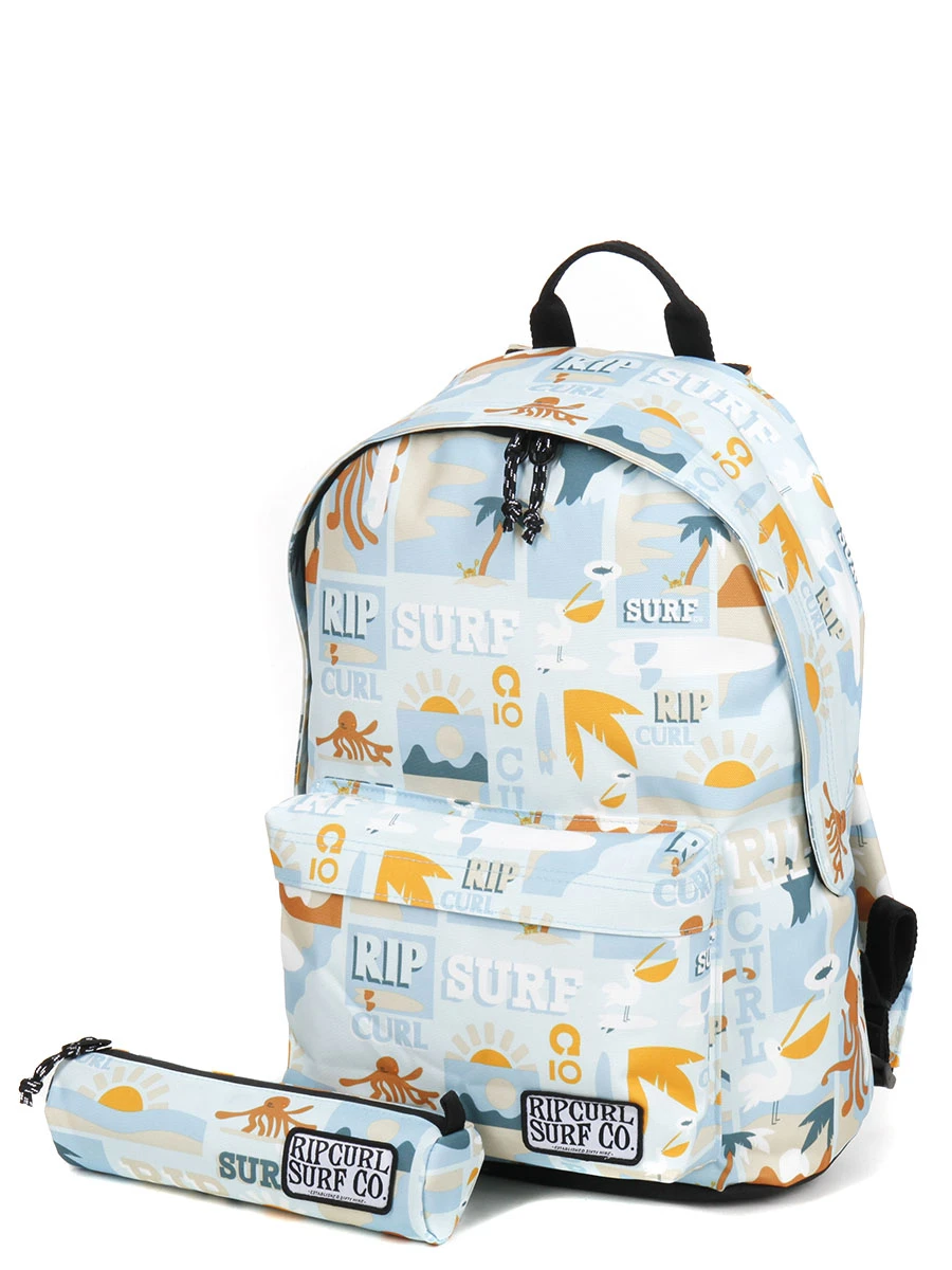 Le sac à dos CE2-CM2 Rip Curl Eco Island Life Dome dispose d’un compartiment pouvant contenir tous les livres et autres cahiers de leçons pour la journée. Le cahier de texte trouve une place privilégiée dans la poche frontale pour un accès rapide.