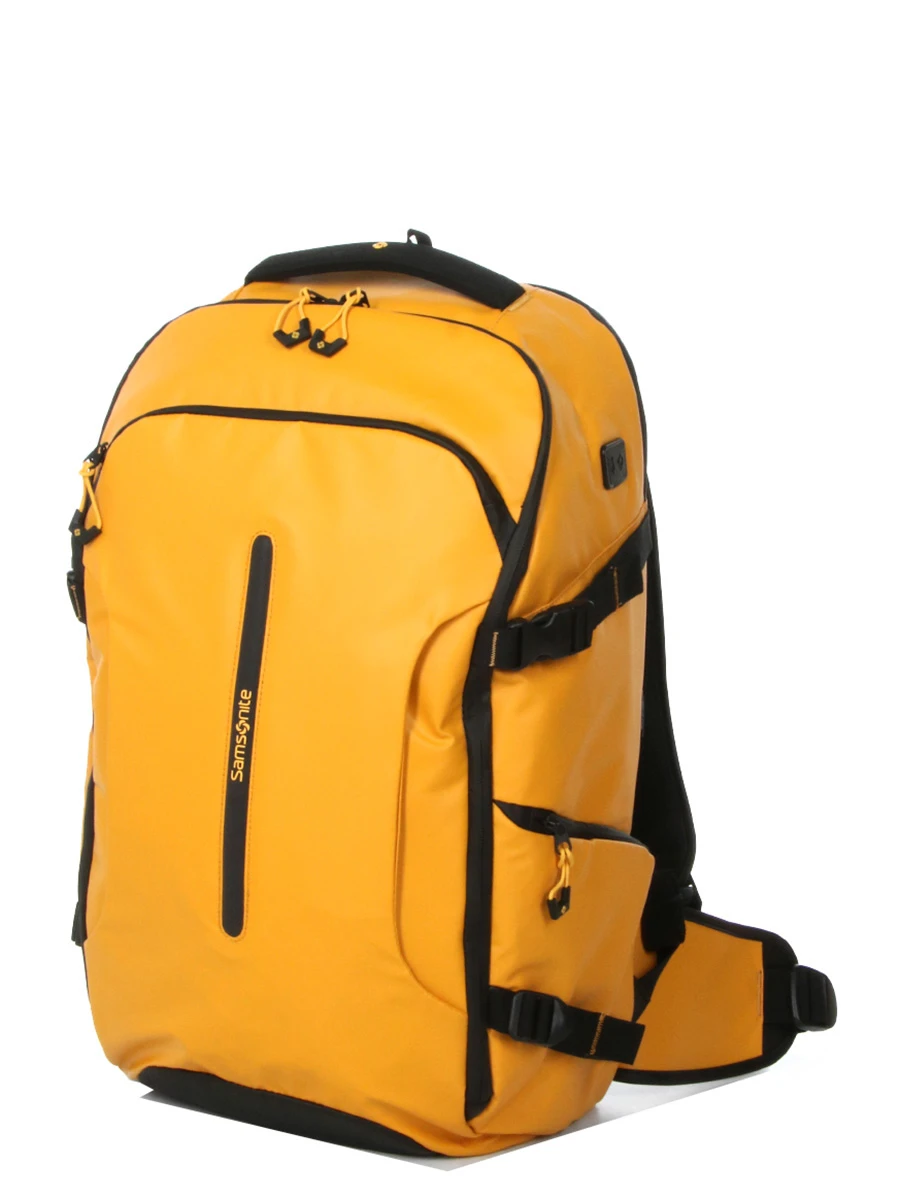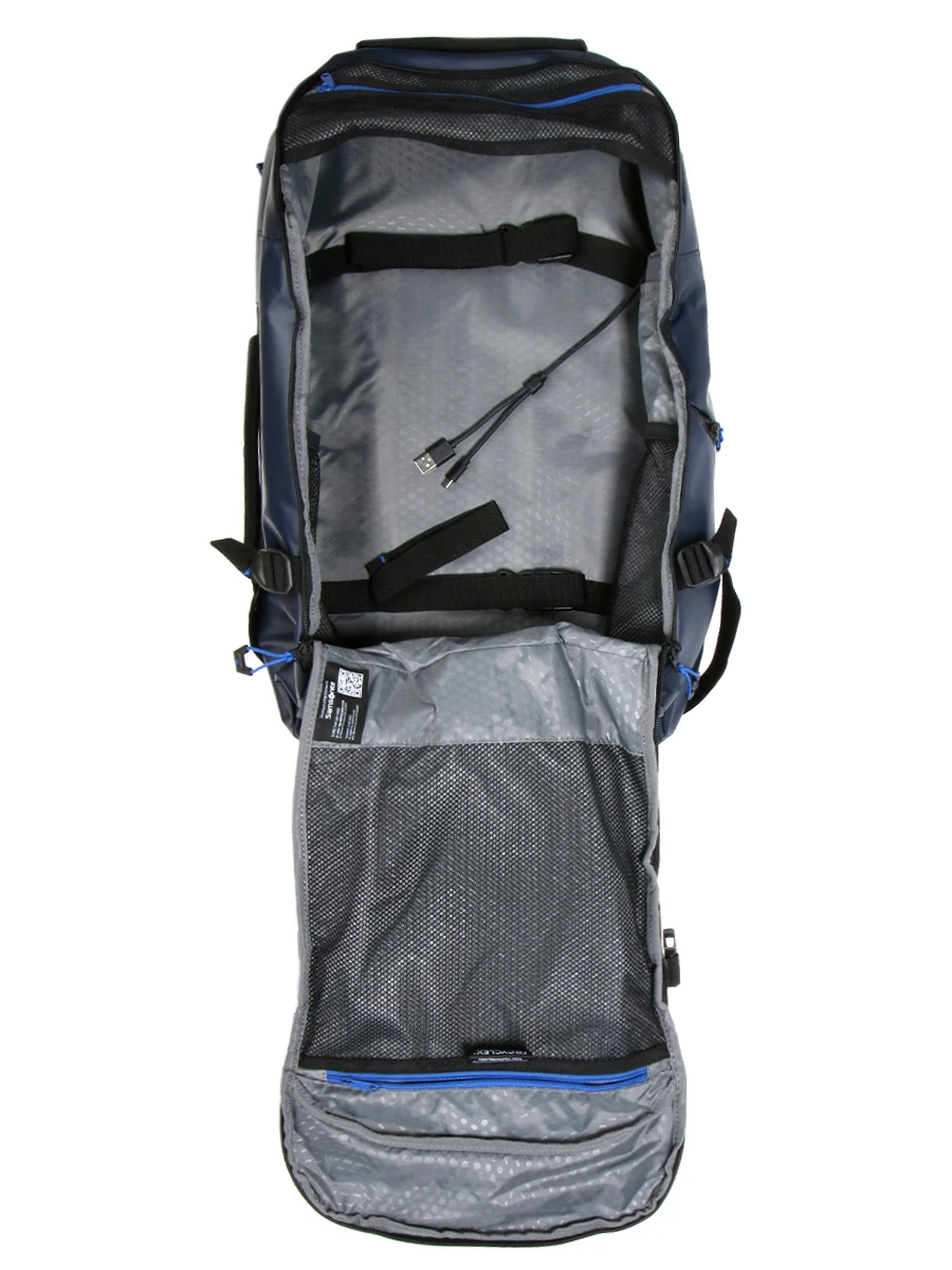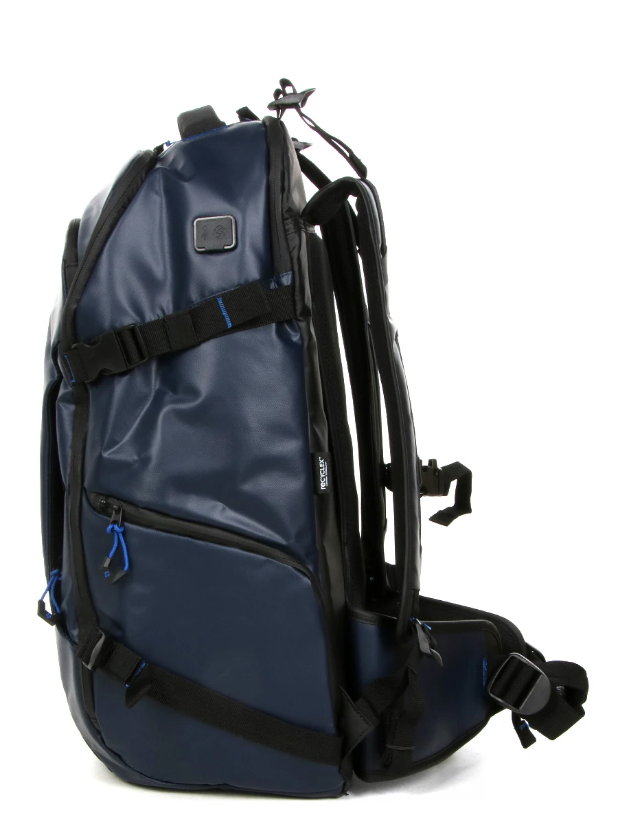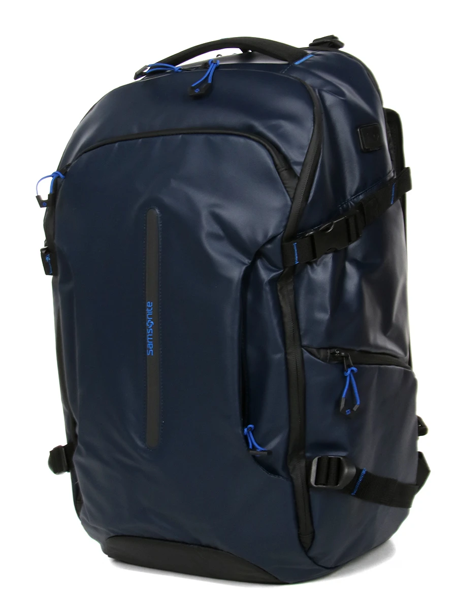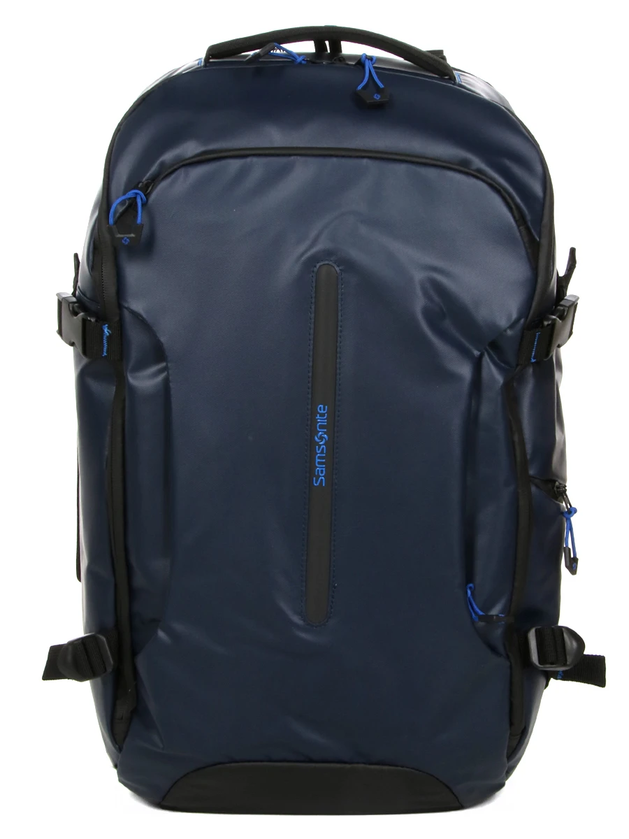 Le sac à dos ergonomique Samsonite Ecodiver Travel S dispose d’un compartiment moussé pour ordinateur jusqu’à 17.3 pouces. Il est également muni d’une poche pour tablette. Les vêtements de rechange pour quelques jours trouvent quant à eux leur place dans le compartiment principal. Celui-ci est muni de quatre sangles ajustables, de deux poches en maille filet pour les accessoires, et de deux poches extensibles pour maintenir les bouteilles de shampoing bien droites afin éviter les fuites. A l’extérieur, il possède une grande poche frontale au format A4. Deux passants pour stylos et deux poches plates permettent d’organiser les fournitures de bureau à l’intérieur. Une petite boucle permet en prime d’accrocher un porte-clefs. Une seconde poche frontale, plus petite, permet de garder un livre en accès rapide. Une poche latérale peut servir de porte gourde.