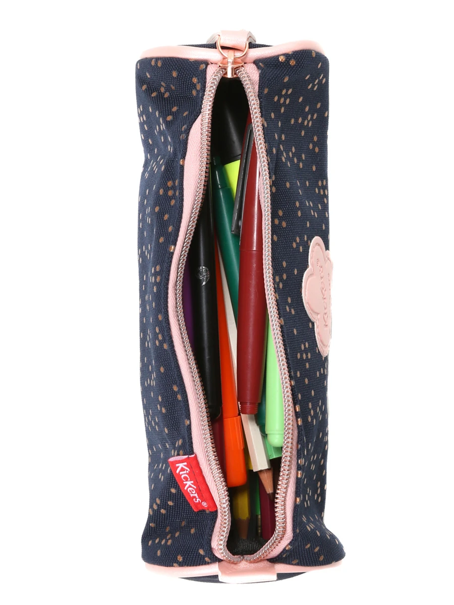 La trousse Kickers Girl permet aux écolières d’afficher un style très mode jusque dans le moindres détails de leur panoplie scolaire. Son revêtement en polyester se pare de motifs à pois rose gold et de finitions en simili cuir rose nacré pour un style résolument tendance. Son prix doux permet de faire plaisir sans pour autant dépasser le budget serré de la rentrée des classes.