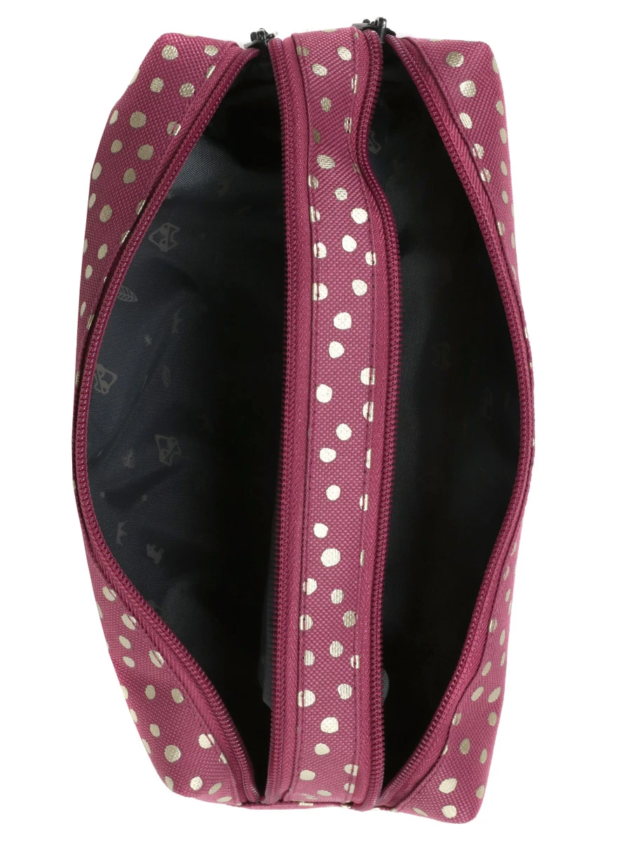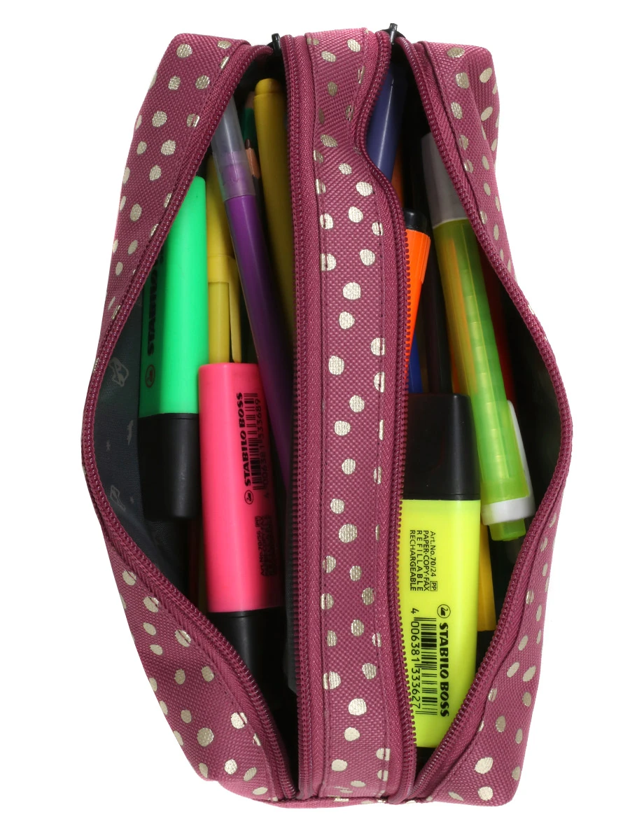 La trousse Pol Fox Butterfly – 2 compartiments ravira les jeunes filles et femmes de toutes les générations avec son design girly et son aménagement multiusages. Son revêtement de couleur figue parsemé de pois doré trouve sa place sur les tables d’école dès l’école primaire et le collège. Les petites mains encore peu assurées comme celles plus expérimentées mais pressées apprécieront les breloques qui équipent ses curseurs de fermetures à glissière et en facilitent la manipulation. Avec son petit prix, plus aucune hésitation n’est possible !