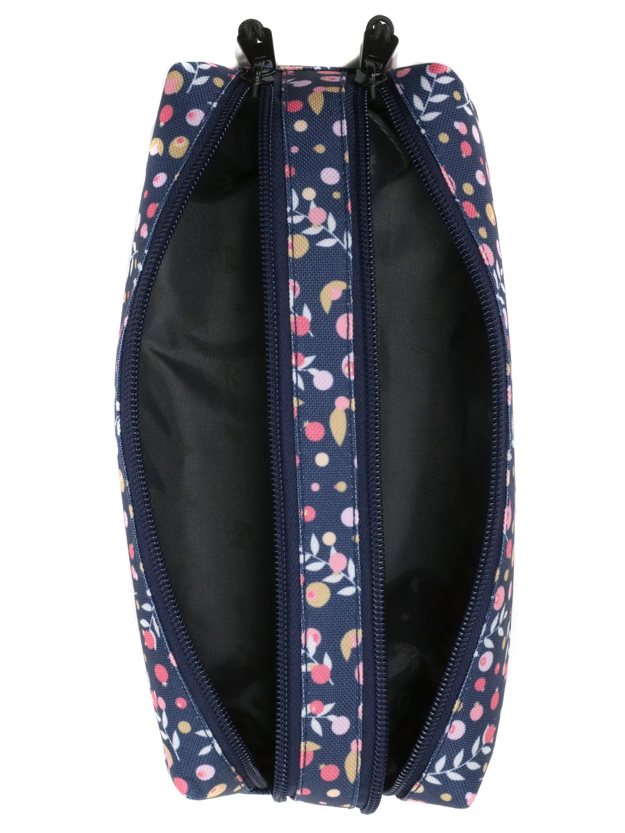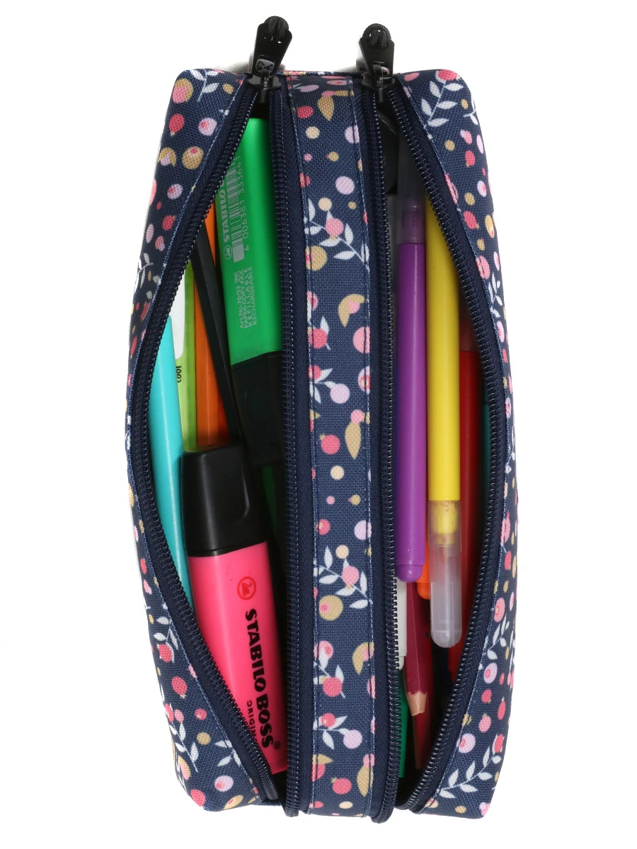 La trousse double Pol Fox Happy Days offre une répartition très pratique de son volume entre deux compartiments. Un aménagement qui se prêtent à de nombreuses utilisations : par exemple, on placera d’un côté le nécessaire d’écriture et de l’autre les crayons de couleurs ou encore d’un côté les stylos et de l’autre les ciseaux, tube de colle, gomme et petite règle. On apprécie la doublure intérieure pour éviter toute fuite d’encre dans le cartable.
