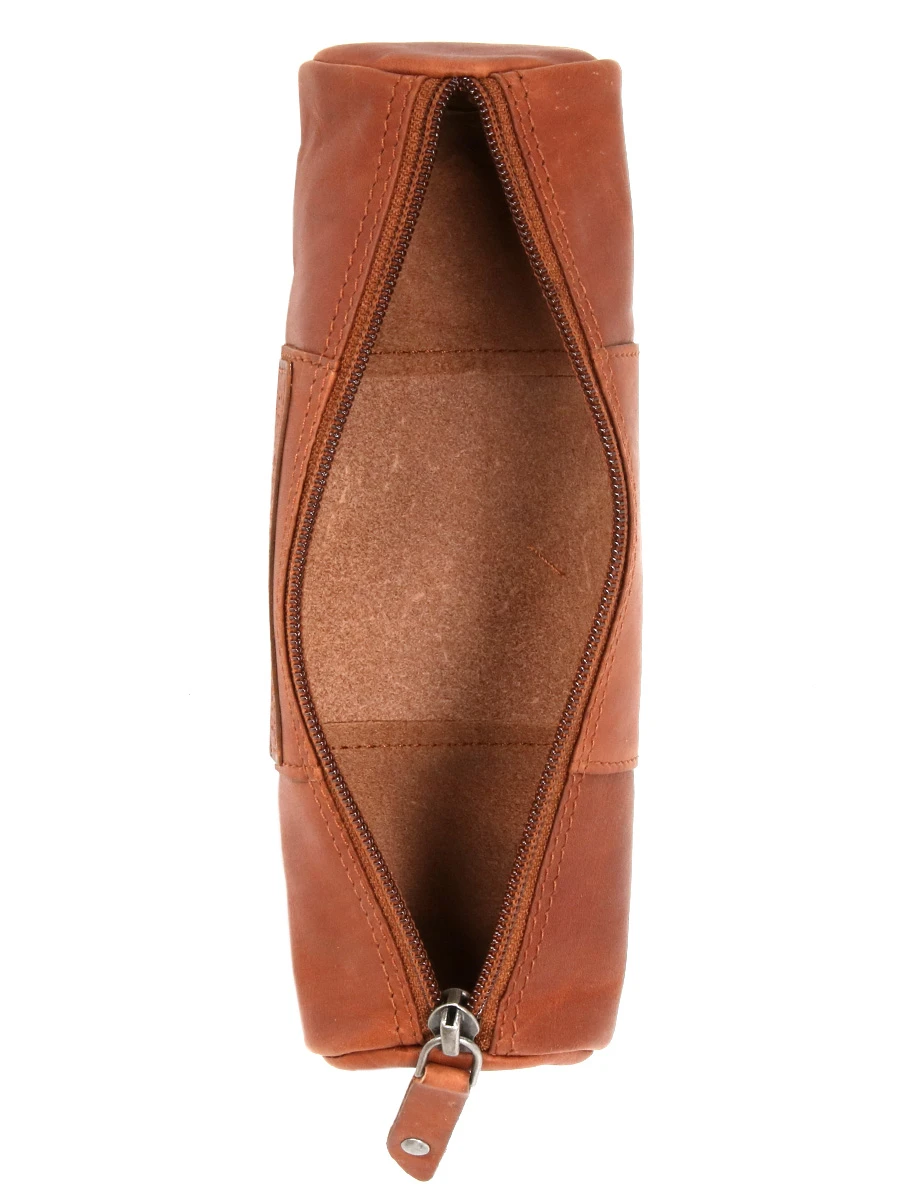 Le compartiment de la trousse ronde The Chesterfield Brand Mossley Lea s’ouvre et se ferme en toute simplicité grâce à sa longue fermeture à glissière robuste. Il est possible d’y glisser quelques stylos à bille, des crayons de papier et autres indispensables au quotidien des artistes, des étudiants et des écrivains dans l’âme.