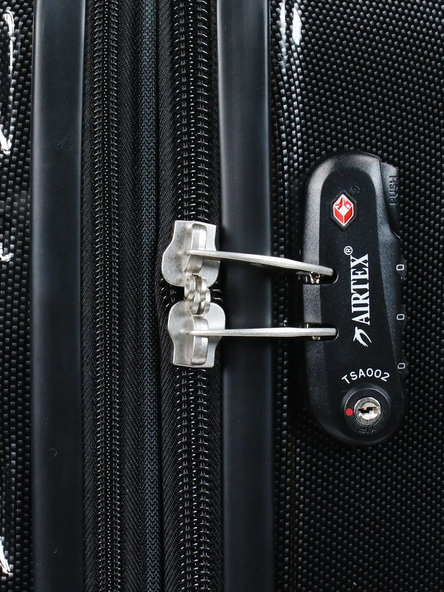 Cette valise rigide Airtex Diome est parfaitement sécurisée grâce à sa serrure TSA à code qui la protègent des vols et facilite les voyages vers les Etats-Unis et le Canada. Côté transport, elle se tracte avec simplicité au moyen d’une poignée de traction ajustable et de 4 double roulettes multidirectionnelles ou se soulève à l’aide d’une de ses deux poignées de portage renforcées, pour une prise en main agréable. Elle est aussi munie de renforts sur le côté pour une excellente résistance aux chocs contre le sols et autres impacts.