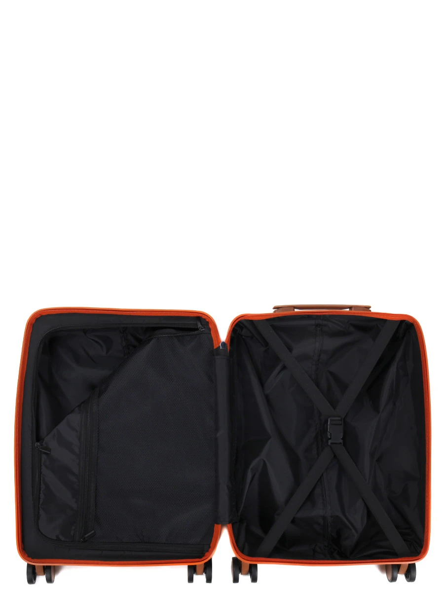 A l’intérieur, la valise cabine Bric’s Ravenna renferme 2 compartiments entièrement doublés, un plateau séparateur en tissu à fermeture éclair, une grande poche en maille filet zippée et 2 sangles élastiques. Il est ainsi très facile d’y déposer des tenues de rechange à part d’une paire de chaussures supplémentaire et de la trousse de toilette, par exemple.