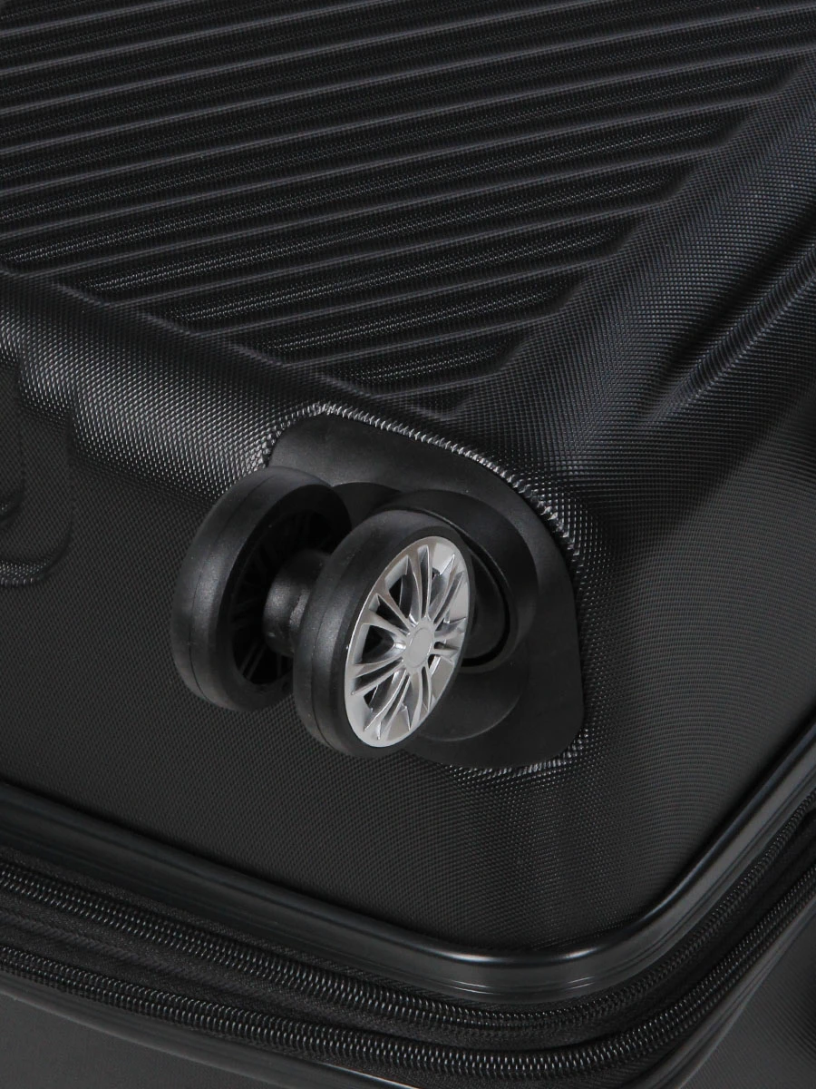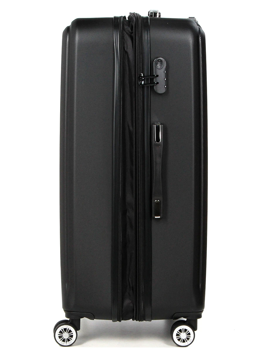 La valise extensible Kinston Bahia offre une glisse fluide. Pour ce faire, elle est montée sur 4 doubles roulettes multidirectionnelles et équipée d’une poignée télescopique double canne. Ses 2 poignées permettent de la tenir à la main de manière commode pour la déposer dans le coffre d’un véhicule, notamment. Sur le côté, une serrure à combinaison chiffrée personnalisable permet de verrouiller l’accès à son contenu.