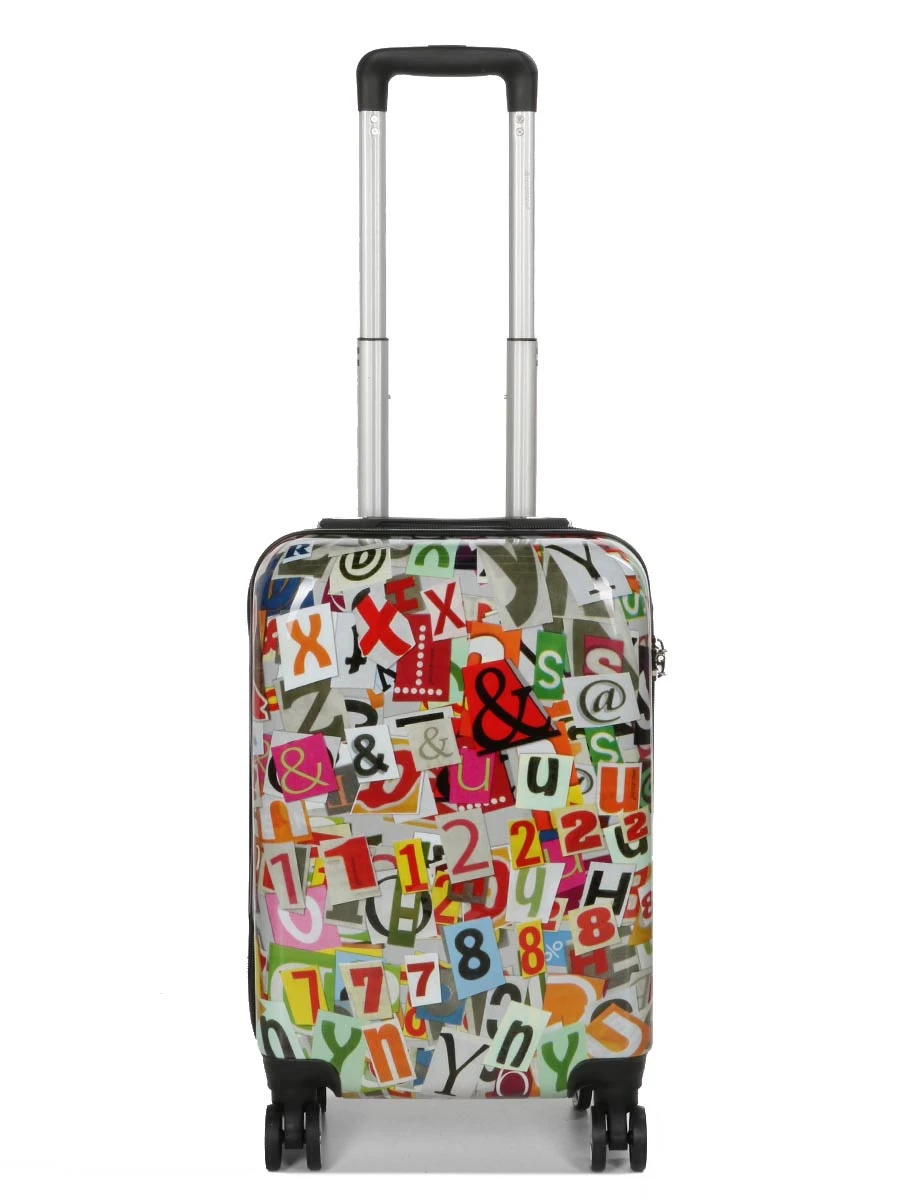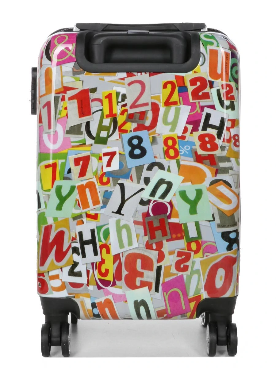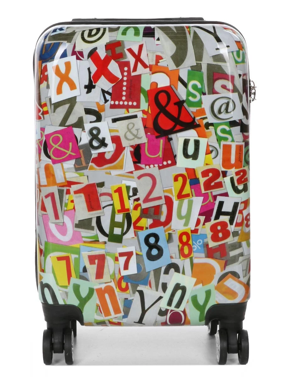 La valise Madisson Newspaper Letters 55 cm se distingue par son design original mêlant sur sa coque brillante des lettres et des chiffres multicolores. Ce décor joyeux permet de plus de rendre le bagage aisément repérable lorsqu’il se trouve parmi d’autres. Finis les moments d’hésitation devant le tapis à bagages de l’aéroport ! Elle offre un petit gabarit bien aménagé qui convient parfaitement aux déplacements de quelques jours. Grâce à sa conception légère en ABS et polycarbonate, elle se soulève sans effort et son système de tractage garantit un roulage fluide. Ses dimensions lui permettent d’être acceptée en cabine par toutes les compagnies aériennes (Air France, Ryanair, EasyJet). Pour ne rien gâcher, elle est proposée à un petit prix.