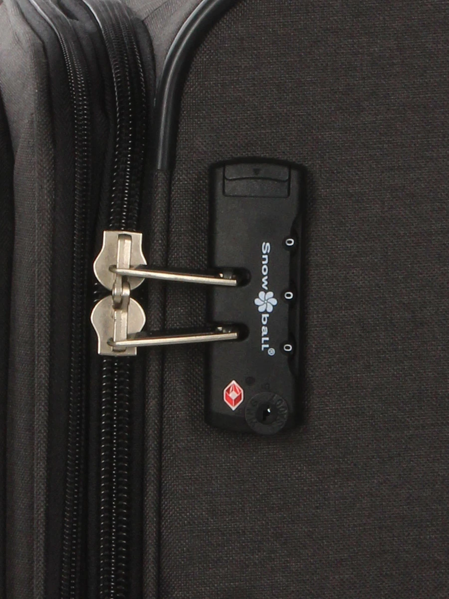 Les quatre roues multidirectionnelles de la valise extensible Snowball Veracruz permettent à son porteur de la faire glisser simplement à ses côtés, en la dirigeant à l’aide du trolley réglable à deux hauteurs différentes. Il est possible de soulever la valise à la main à l’aide des poignées ergonomiques supérieure et latérale, et de la porter à plat en s’aidant de la poignée en plastique rigide située sous son fond. Pour ne pas risquer d’endommager son revêtement en la roulant ou en la posant, la valise est dotée de renforts de protection. Pour faciliter les voyages vers l’Amérique du nord, la serrure TSA à code sécurise la fermeture à glissière tout en laissant la possibilité aux douaniers de l’ouvrir. Une autre possibilité de sécurisation : glisser un cadenas (non fourni) dans les curseurs perforés. En cas de perte, le porte-adresse situé à l’arrière démontrera toute son utilité.